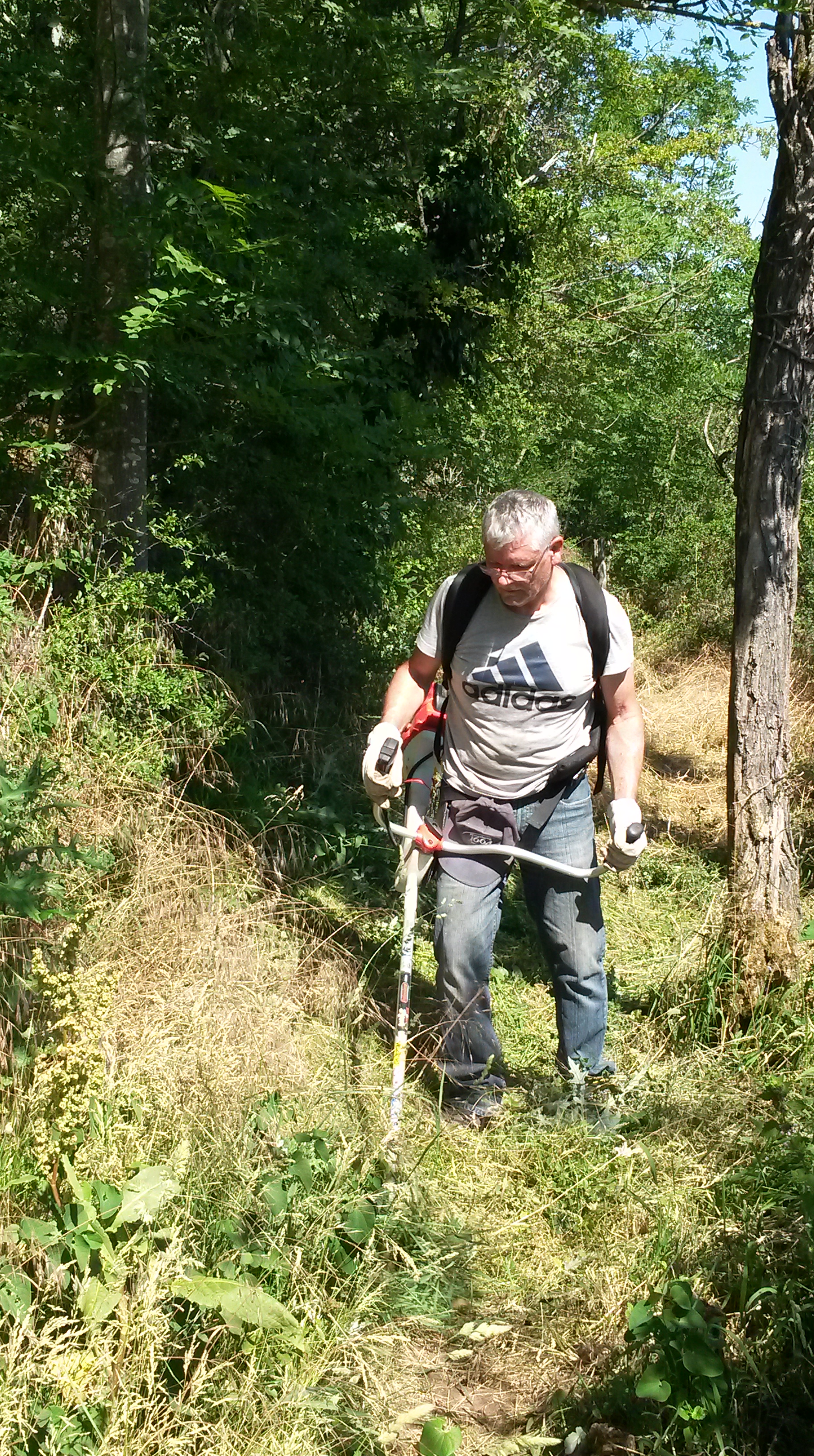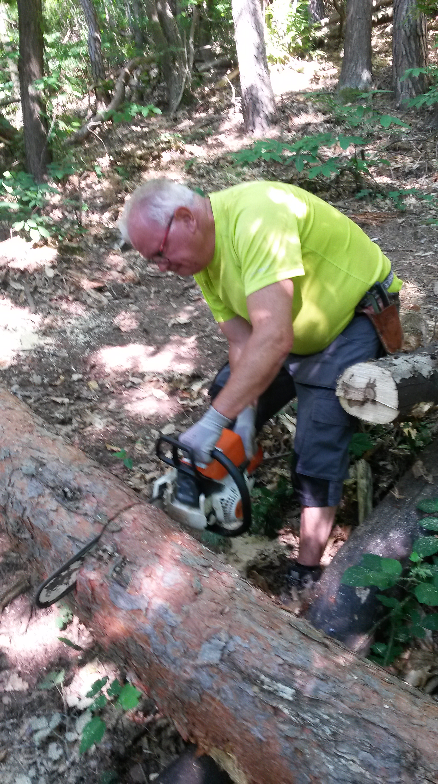 Débroussaillage, enlèvement d’arbres tombés sur le sentier des calvaires à partir de la chapelle Saint Wendelin.
