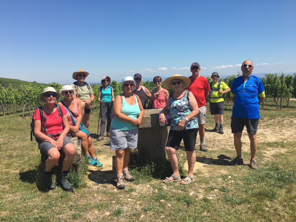 Notre première randonnée depuis le déconfinement ! Pierre, notre guide, a emmené le groupe sur le sentier des poètes alsaciens. Ce sentier était le point de départ de la randonnée. Un petit détour nous a permis de voir de près la carrière de Soultz les bains, vieille de 245 millions d’années. Elle a été utilisée, après construction du Canal de la Bruche, pour fournir les pierres servant à la construction de la Citadelle de Strasbourg. Puis, nous avons traversé le magnifique vignoble de Wolxheim pour rejoindre Maria Altbronn, lieu de pélerinage aux environs d’Ergersheim. Retour par le Horn pour nous retrouver à la chapelle St Denis devant le cimetière.