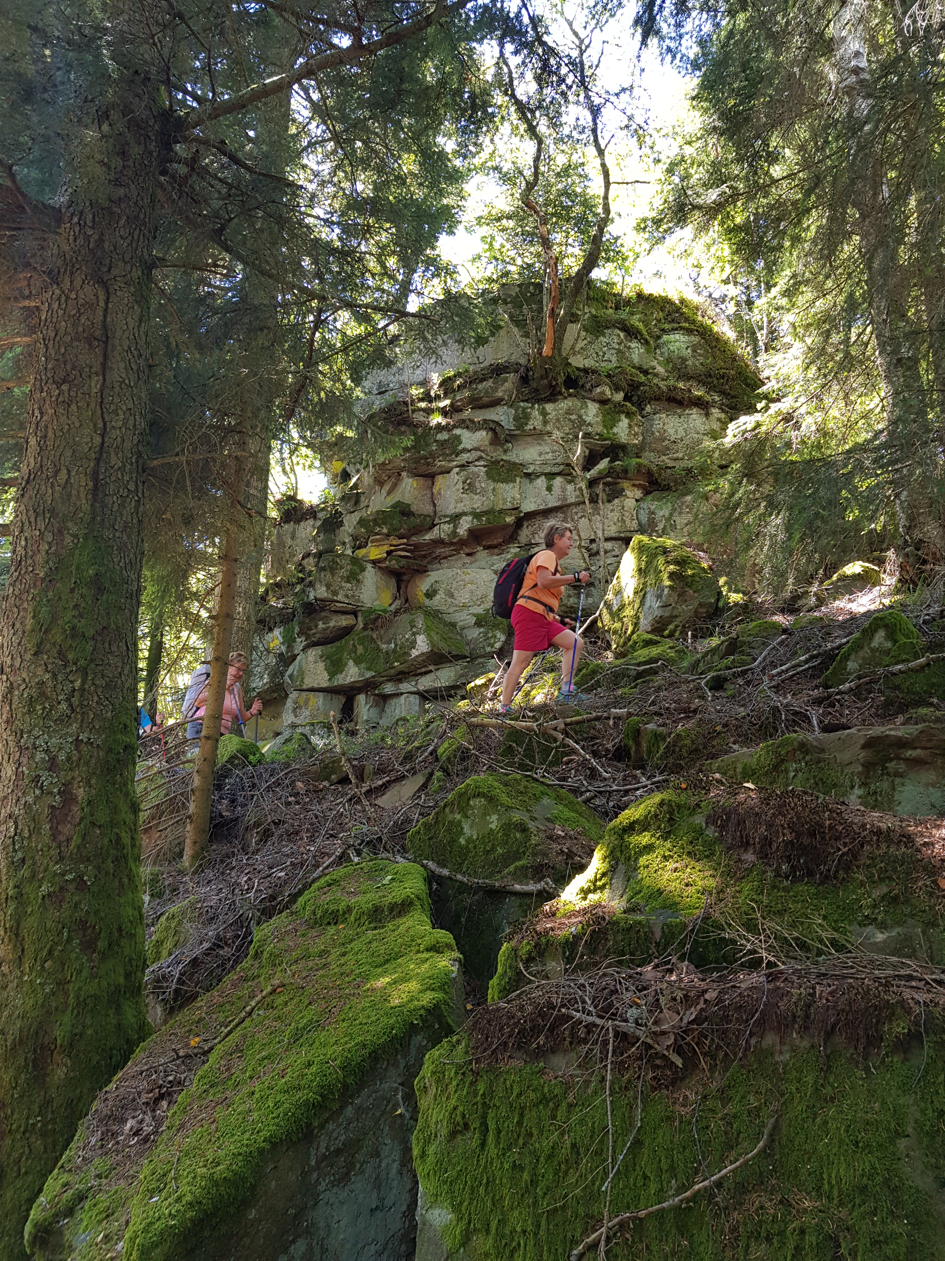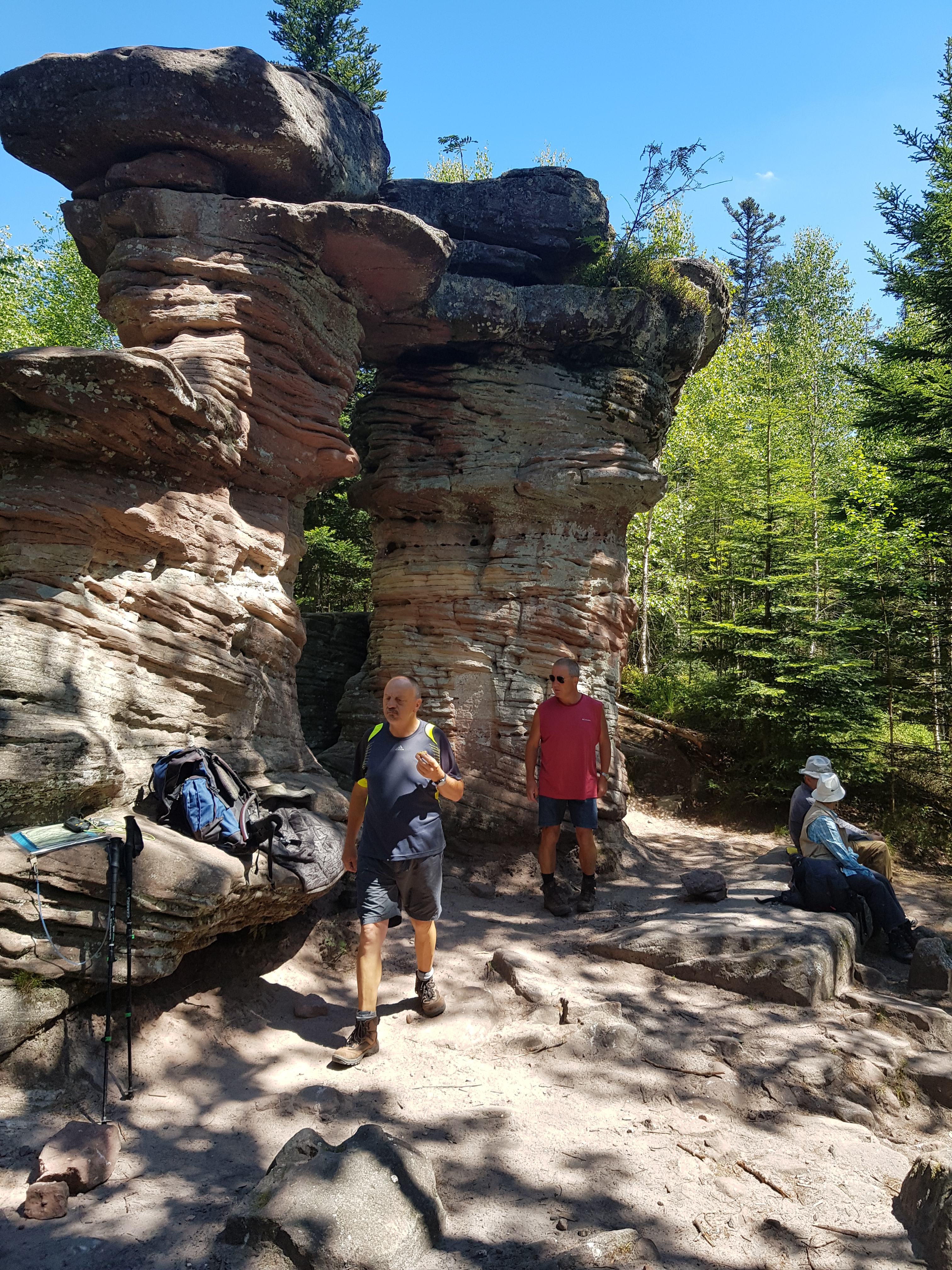 Nous sommes passé au Jardin des fées (820 m), la Porte de Pierre (860 m), un petit détour par le Katzenberg et enfin, point culminant de la journée, le Rocher de Mutzig (1009 m). Au retour, nous avons fait un arrêt à la Baraque des Juifs, au col du Narion, et la descente fut une formalité accomplie dans une bonne ambiance, détendue.