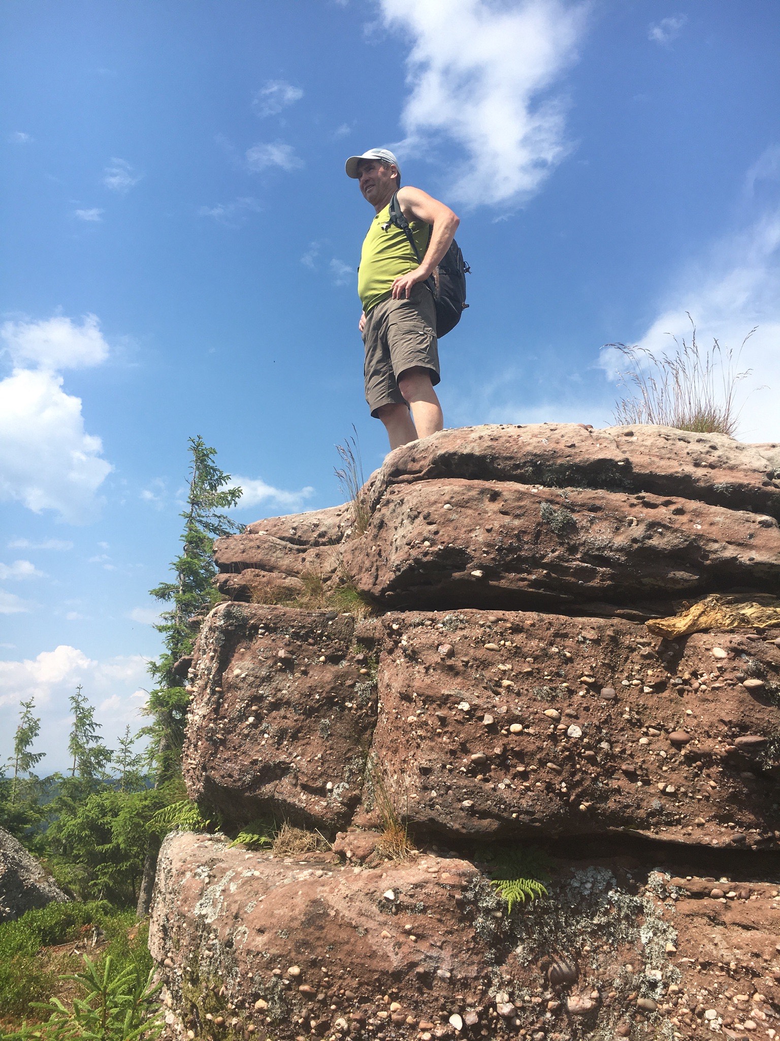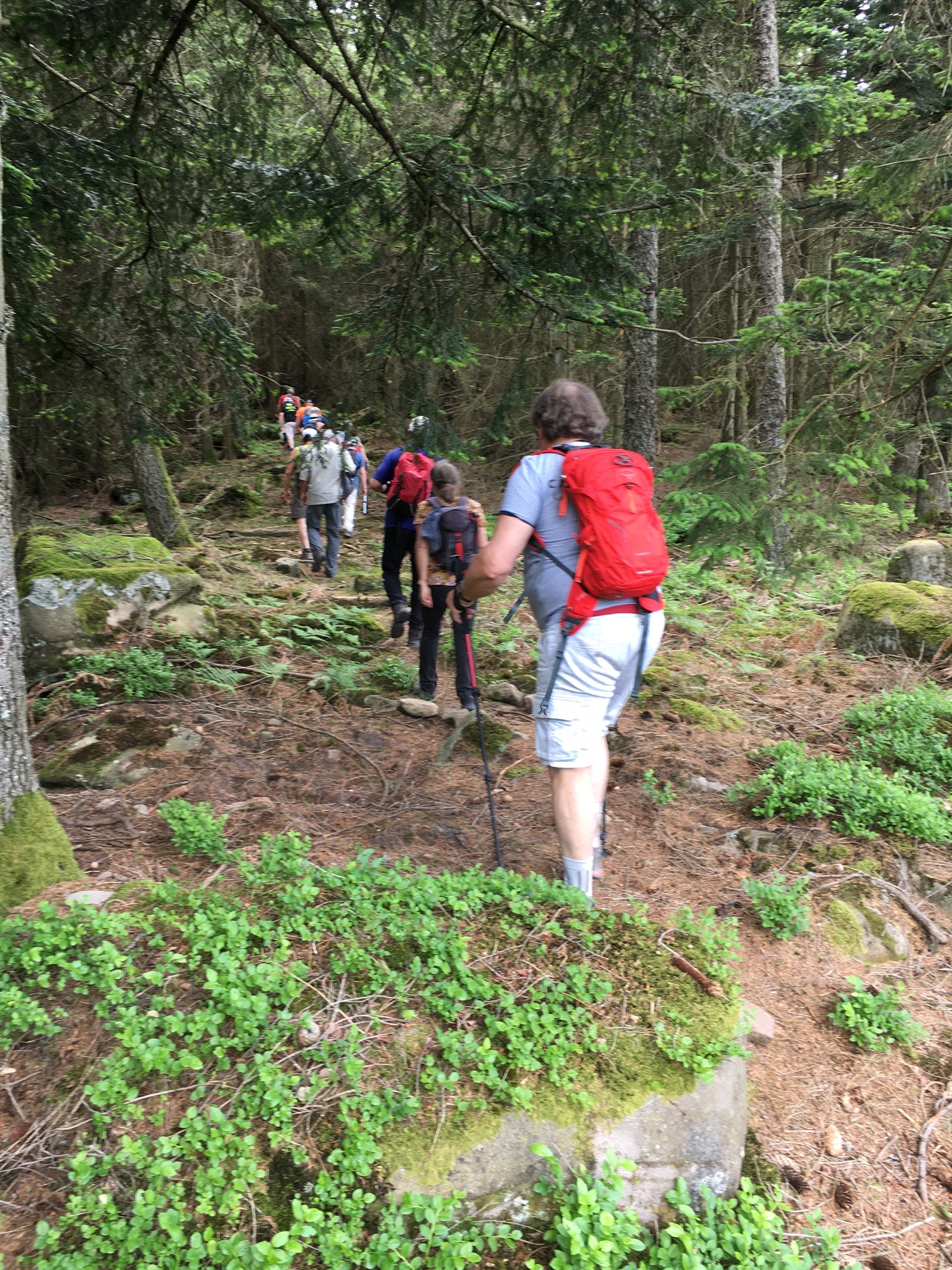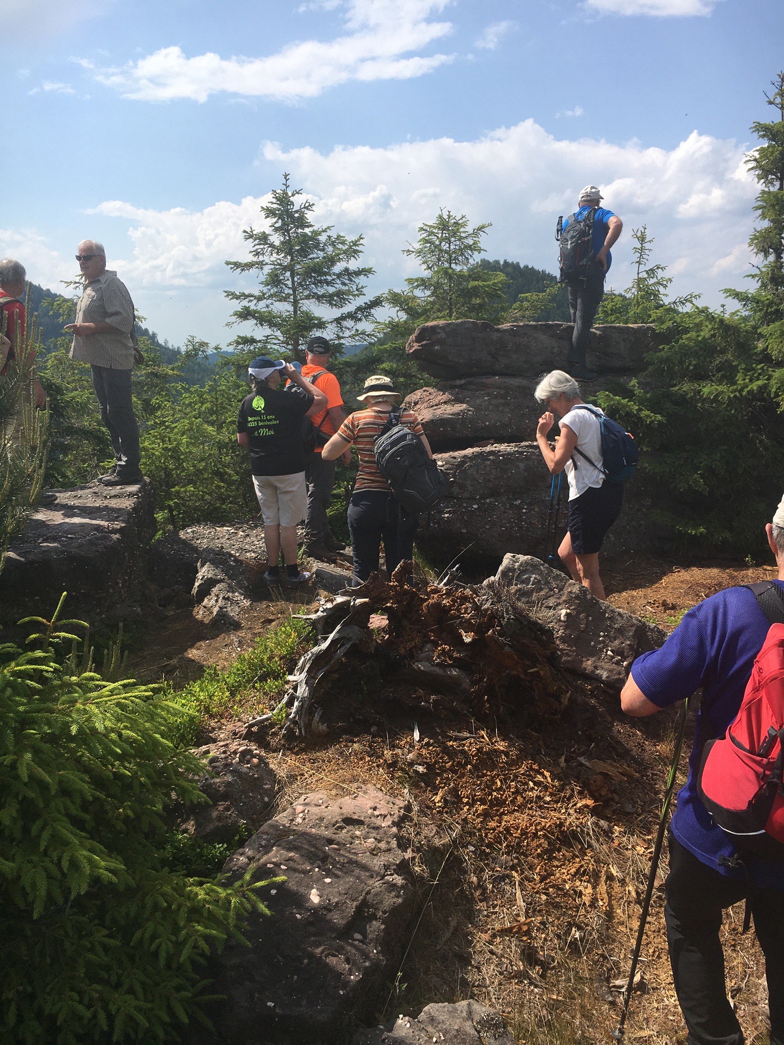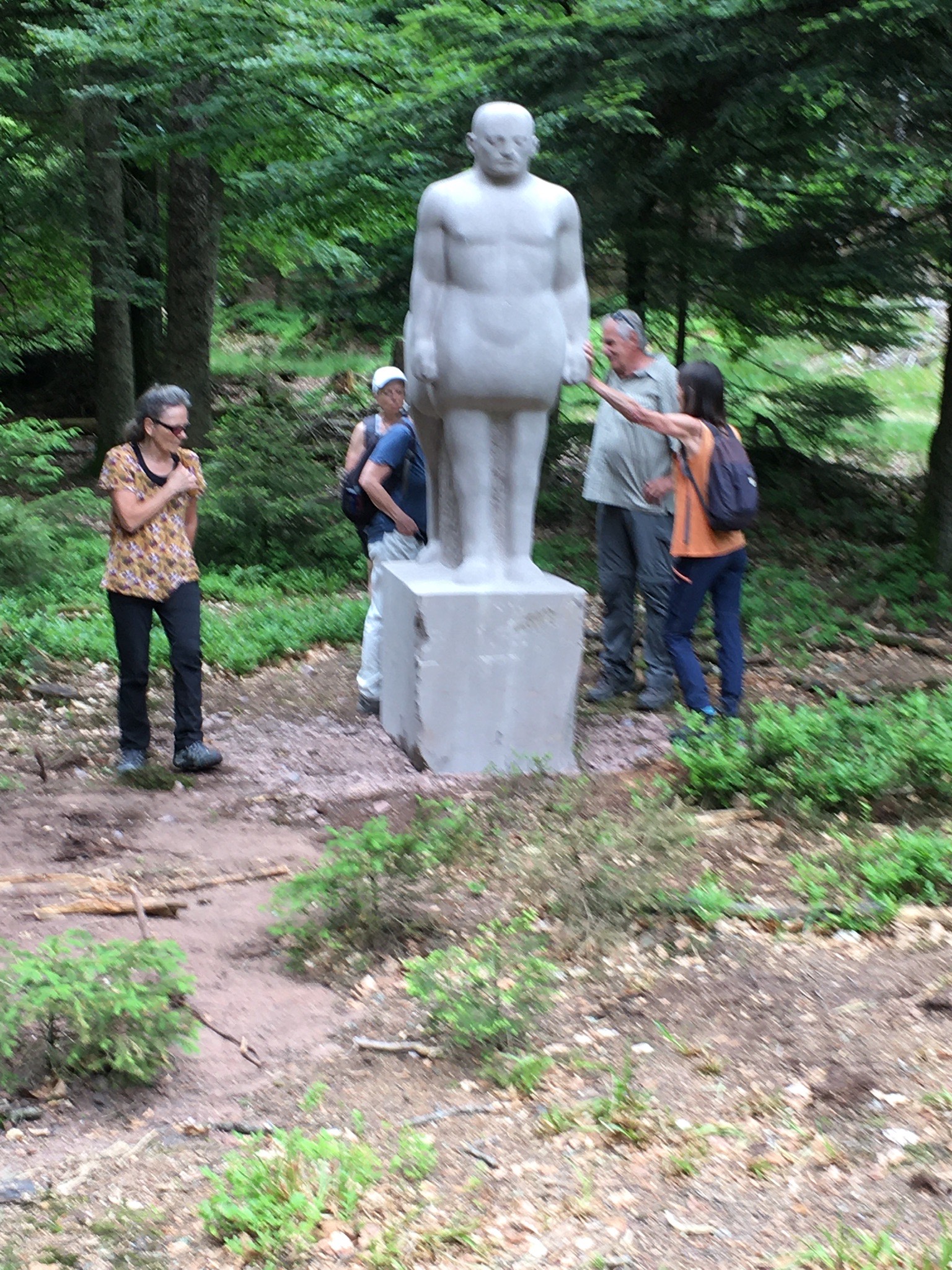 Christiane, la guide, a emmené les 19 participants à la découverte du Kohlberg. En chemin, le groupe a pu admirer de nombreuses sculptures. Une montée sur un sentier peu pratiqué a permis aux participants de rejoindre le sommet du Kohlberg d’où une vue à 360° sur la vallée et les 2 Donons