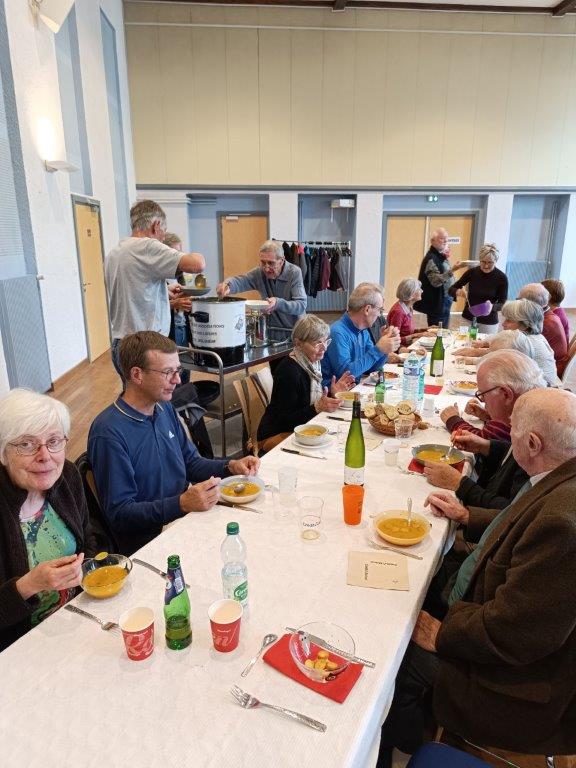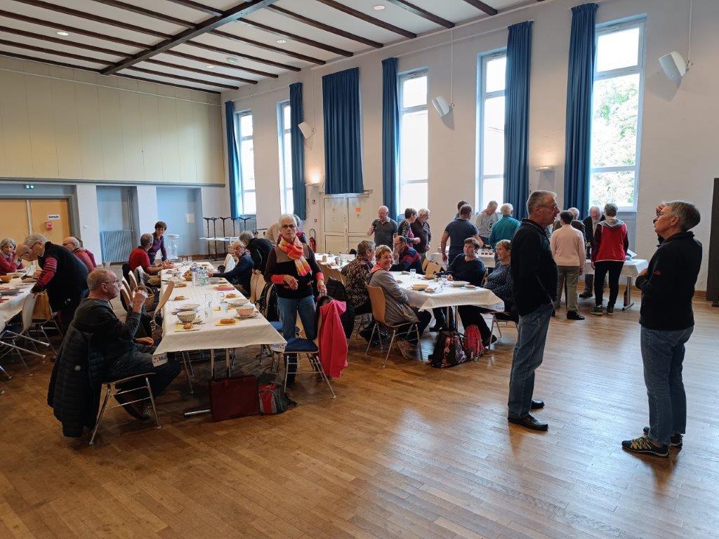 La journée a débutée par une randonnée sur la colline de Molsheim. Ensuite les 51 participants se sont retrouvés au Foyer St Joseph pour déguster la soupe des vendangeurs. Tout cela dans une ambiance conviviale.