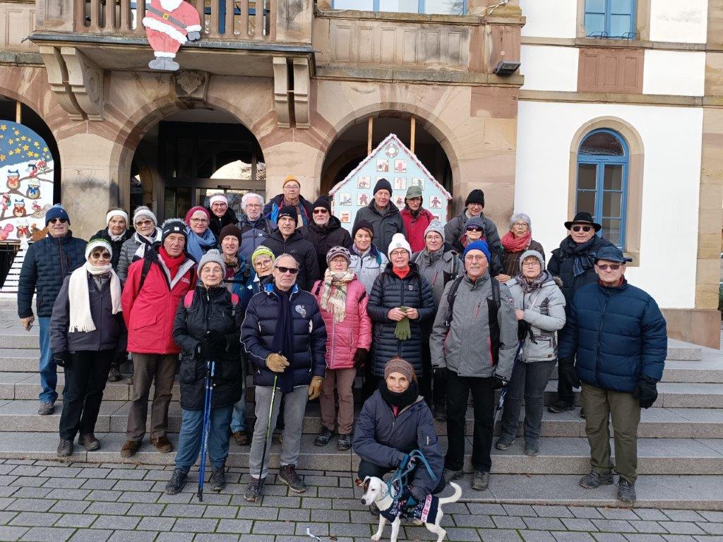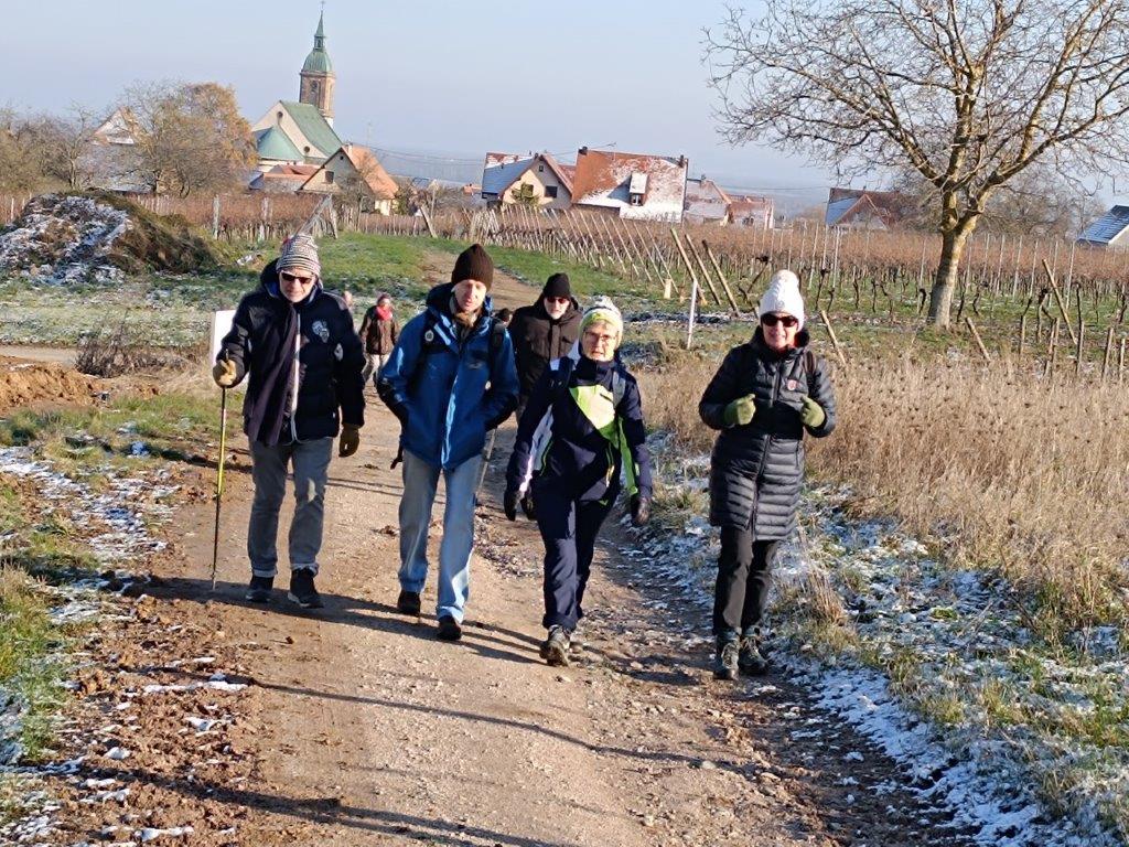 Randonnée autour d’Epfig par ce premier dimanche ensoleillé de l’Avent. Visite de la chapelle Ste Marguerite décorée puis rencontre surprise avec St Nicolas et le Père Fouettard. Ensuite direction Gertwiller pour la visite du musée du pain d’épices. Le groupe de 35 personnes guidé par Christian s’est retrouvé au restaurant « Belle vue » à Zellwiller pour se régaler de moules marinières.