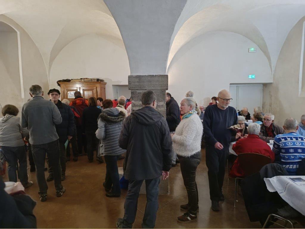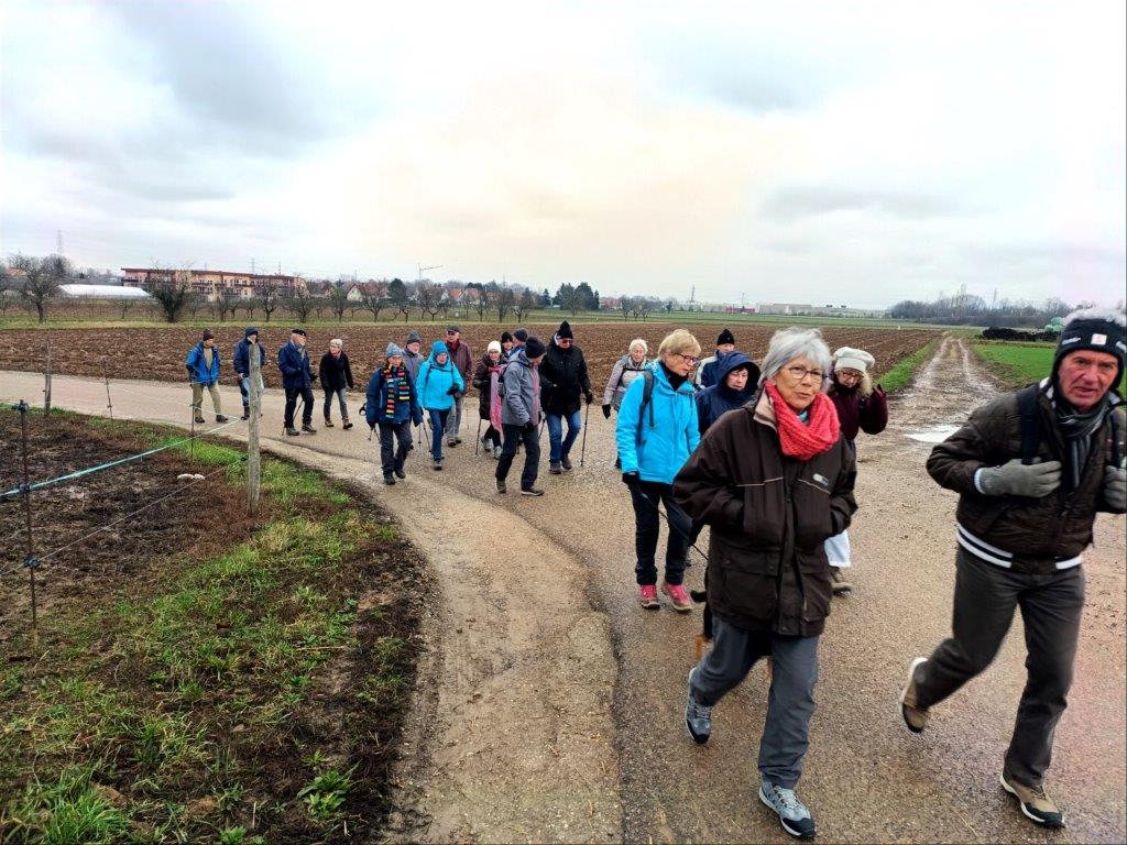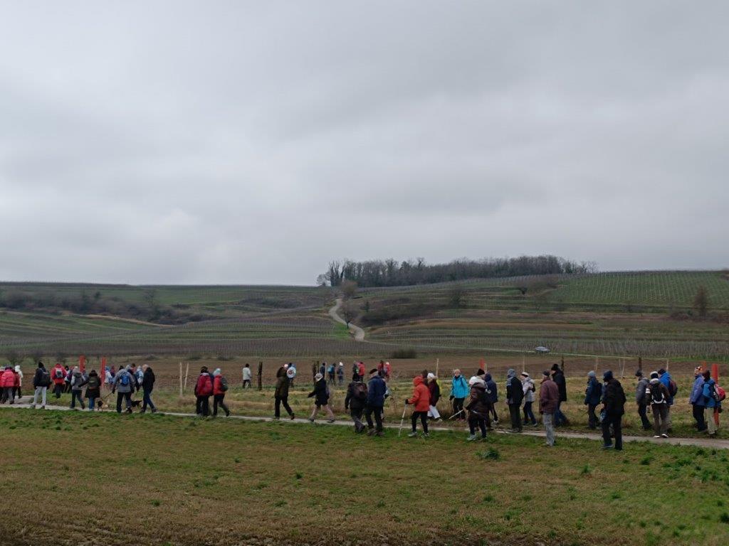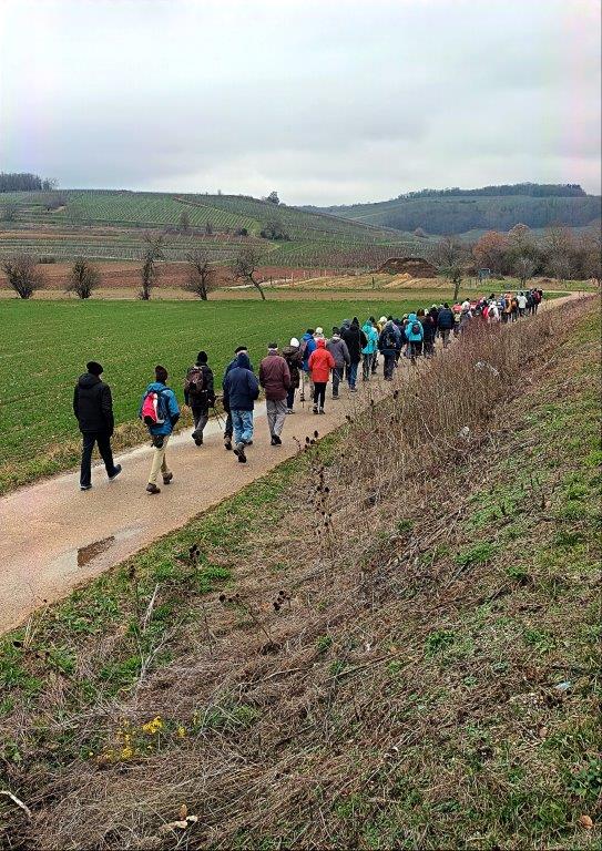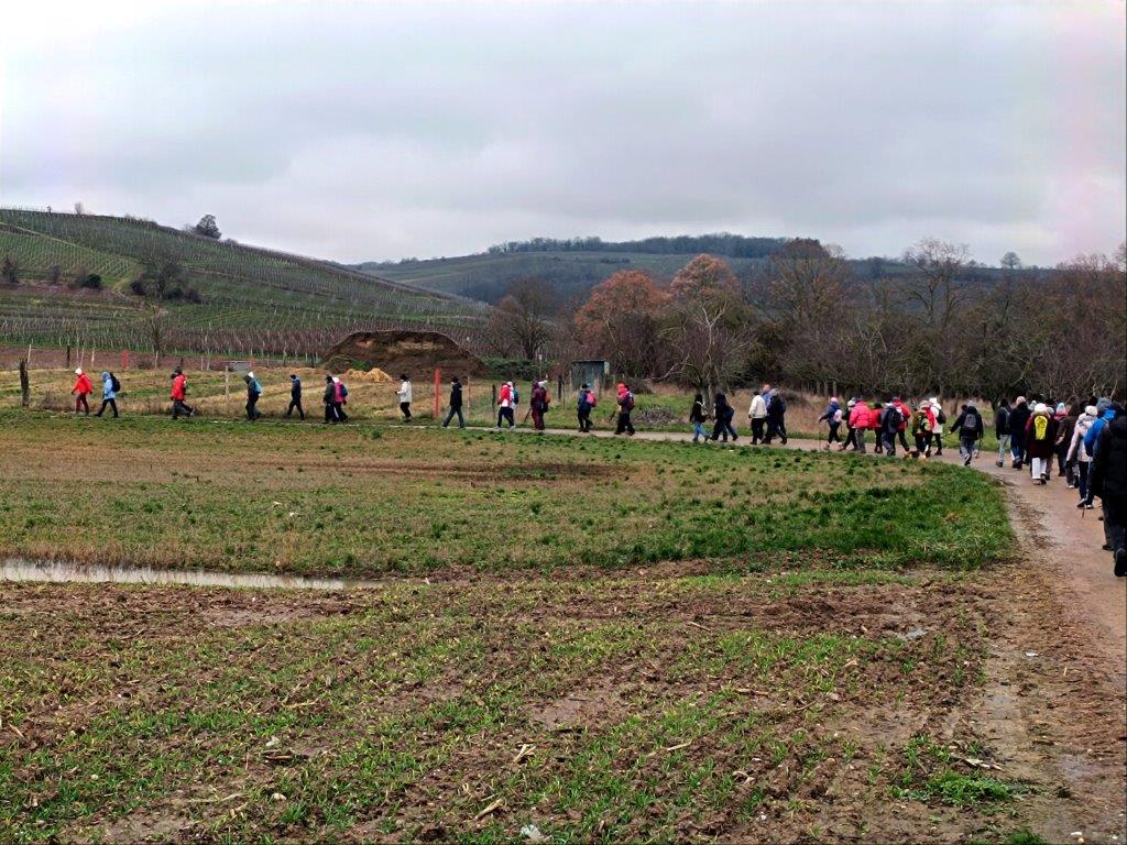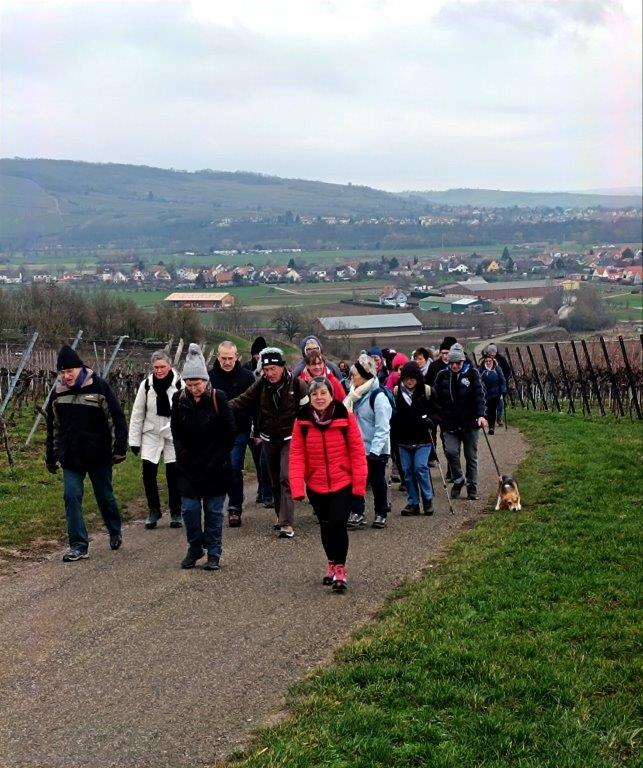 Pour cette première sortie de l’année, André, notre guide du jour, nous a mené à travers le vignoble de Dorlisheim, et jusqu’aux hauteurs de Rosenwiller. Le temps frais, et le vent n’ont pas entamé le moral des 80 marcheurs présents pour ce décrassage. Et tout le monde a été récompensé par un vin chaud, des gâteaux et des bredele au caveau du château de Dorlisheim.