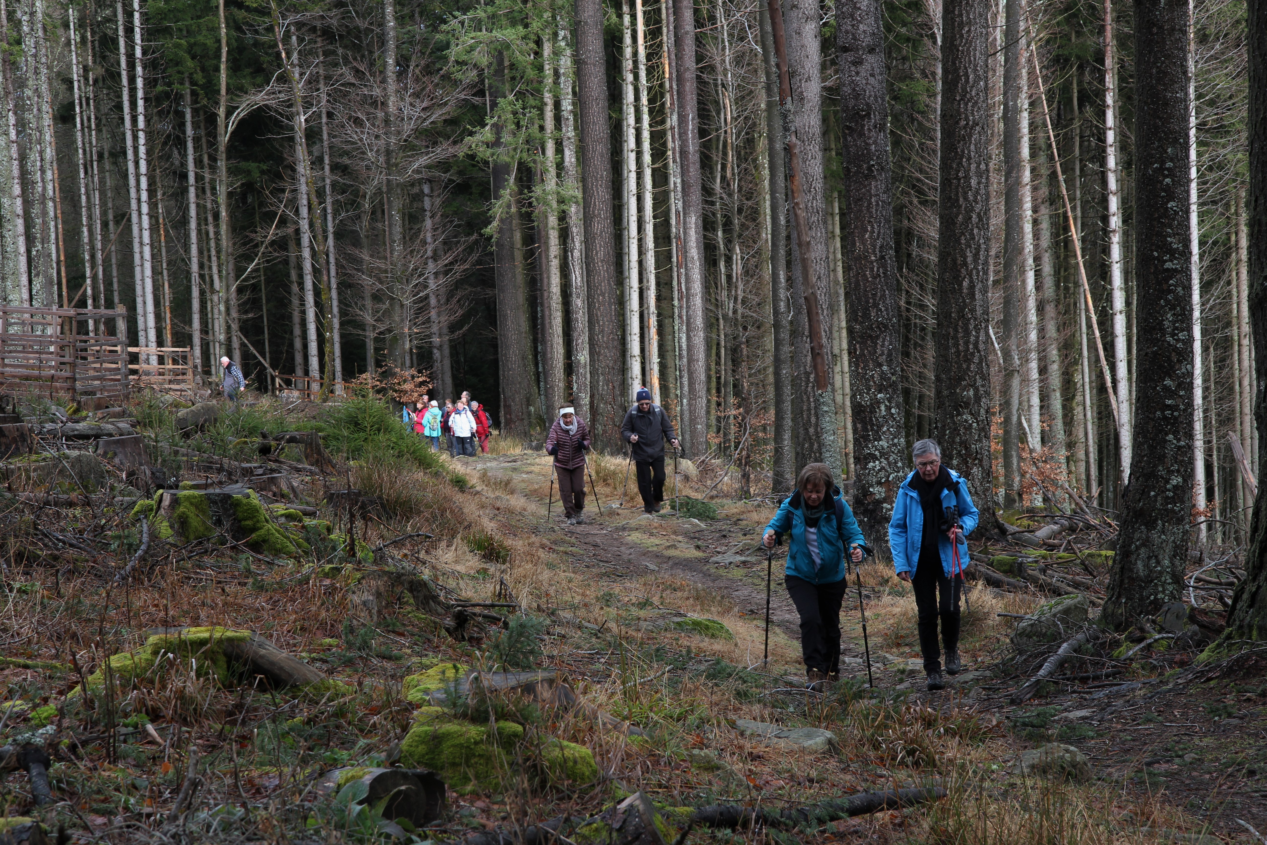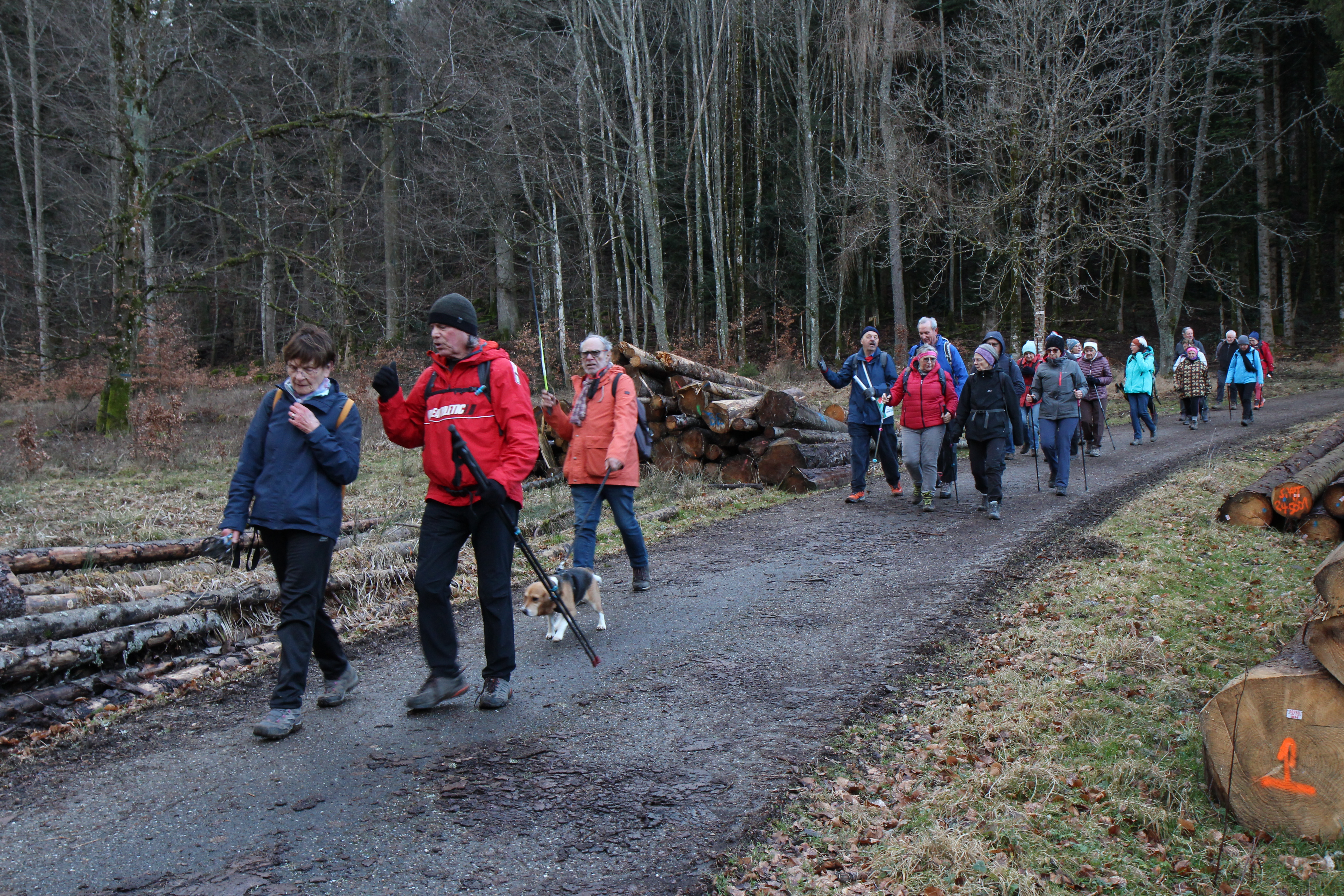 35marcheurs, sous la conduite de Pierre, sont partis du carrefour de la Breitmatt pour aller jusqu’au Neuntelstein, en passant par la maison forestière du Welschbruch. Ces 10 km ont permis de s’aérer par un après-midi frais et lumineux.
