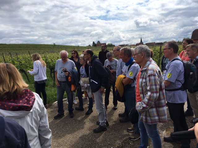 RV chez le viticulteur à partir 10 h 30. A 11 h départ de la promenade guidée par Mme Dischler qui, tout au long, donnait des explications quant aux travaux dans les vignes et les différents cépages.