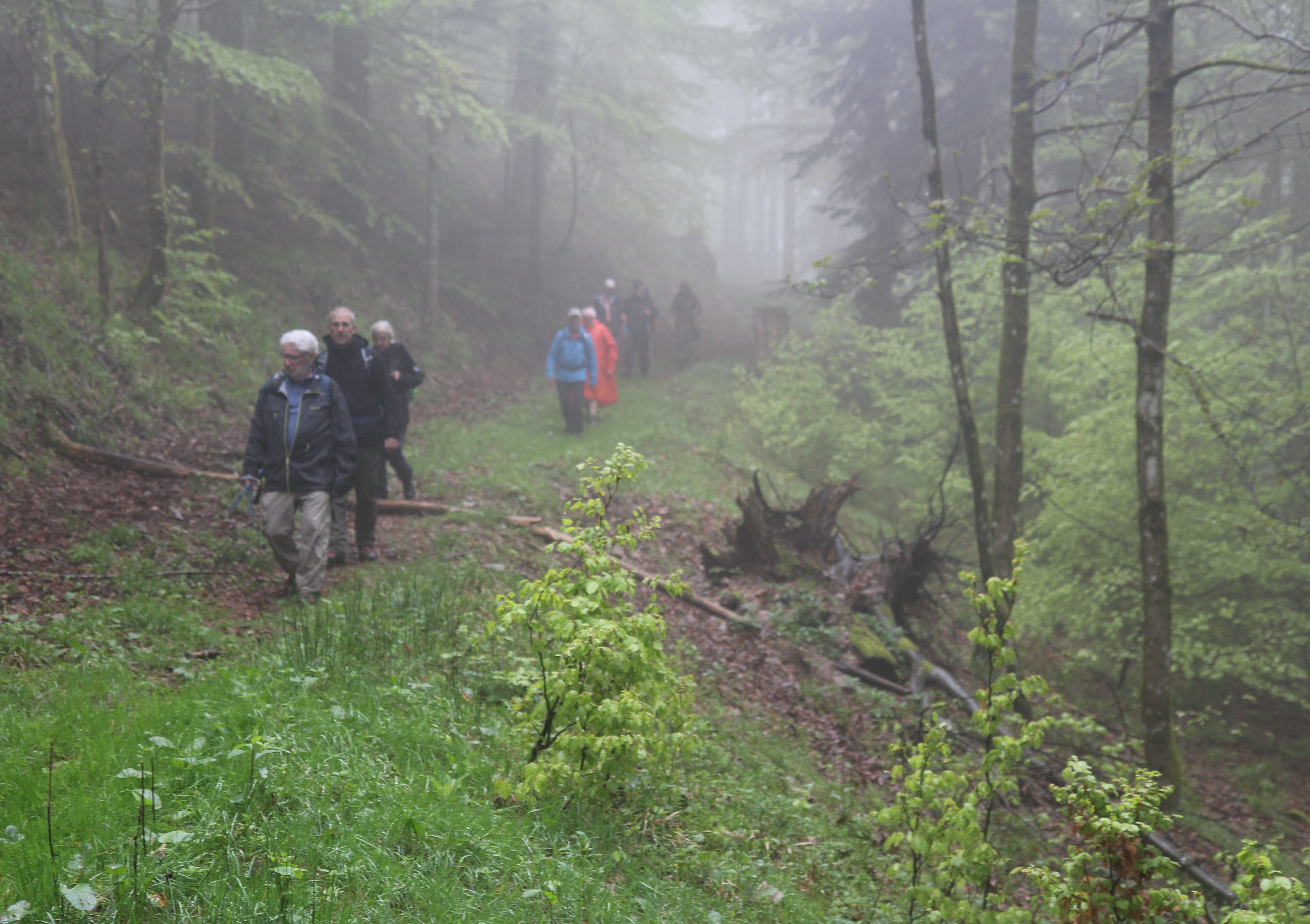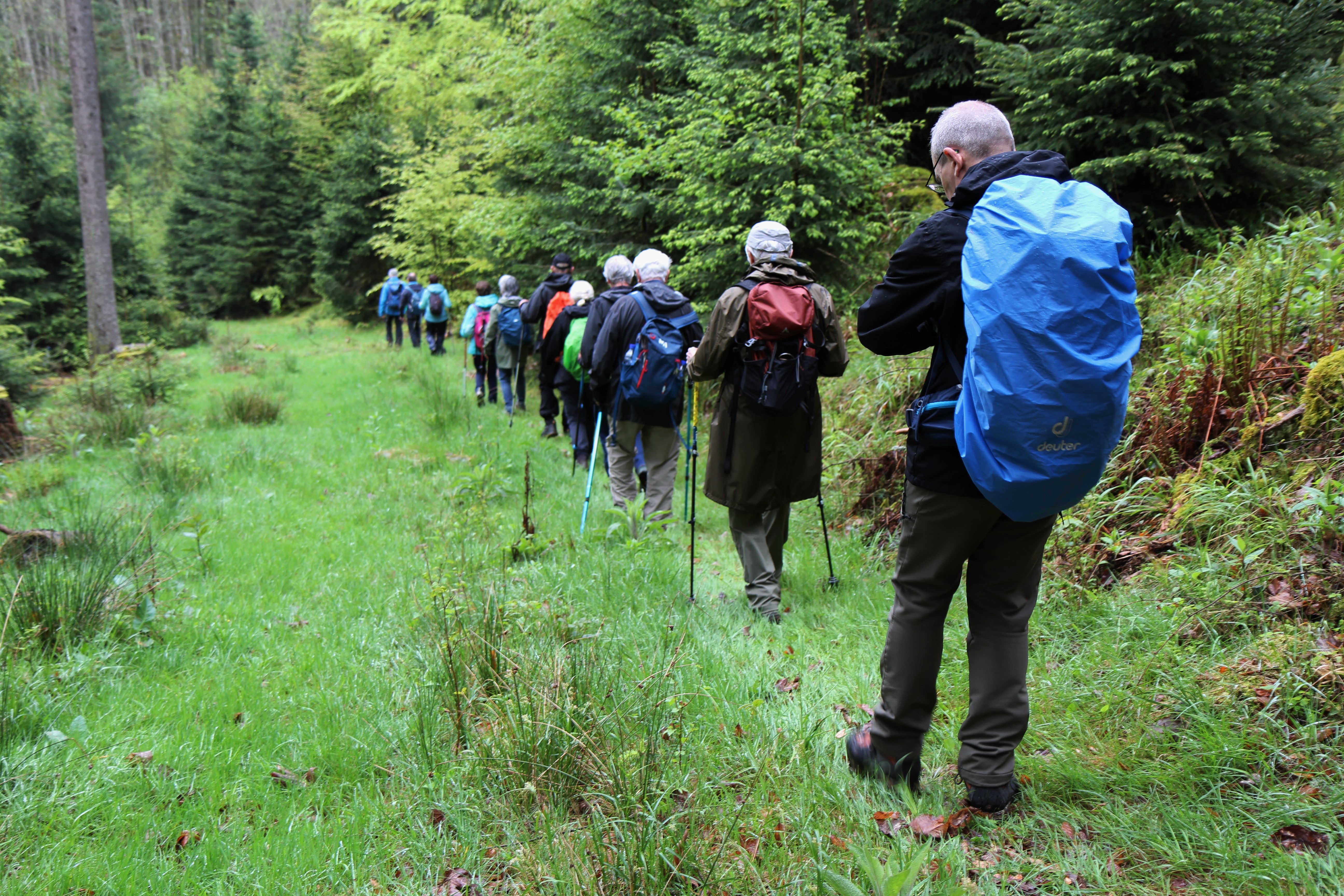 13 randonneurs ont fait le circuit suivant : Schirmeck – Château de Schirmeck – croix Walter – fontaine Léopold – ferme du Zybrink – Struthof – mer des roches – cabane des cinq routes – route forestière Ordon Saxe – roches blanches et retour à Schirmeck.