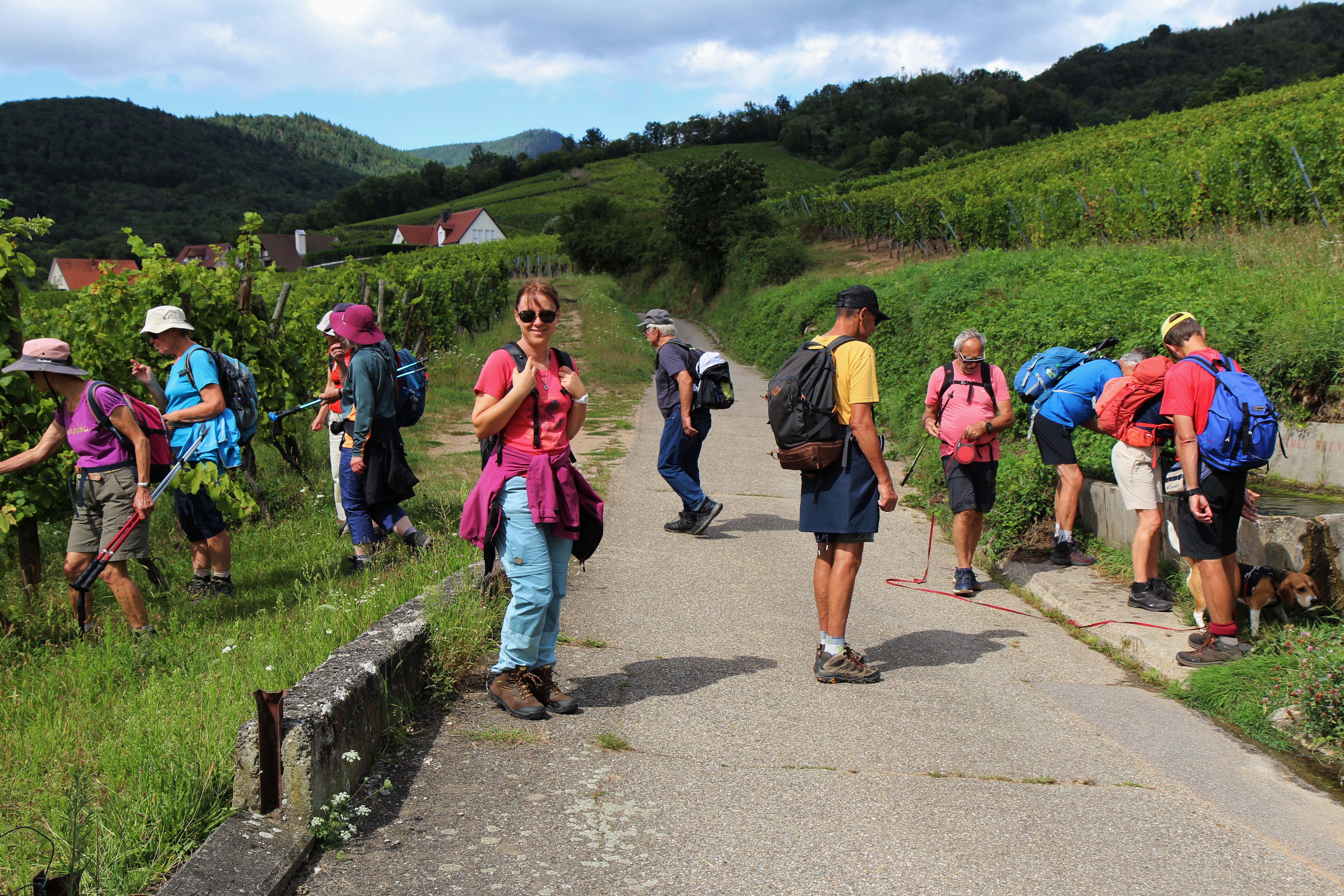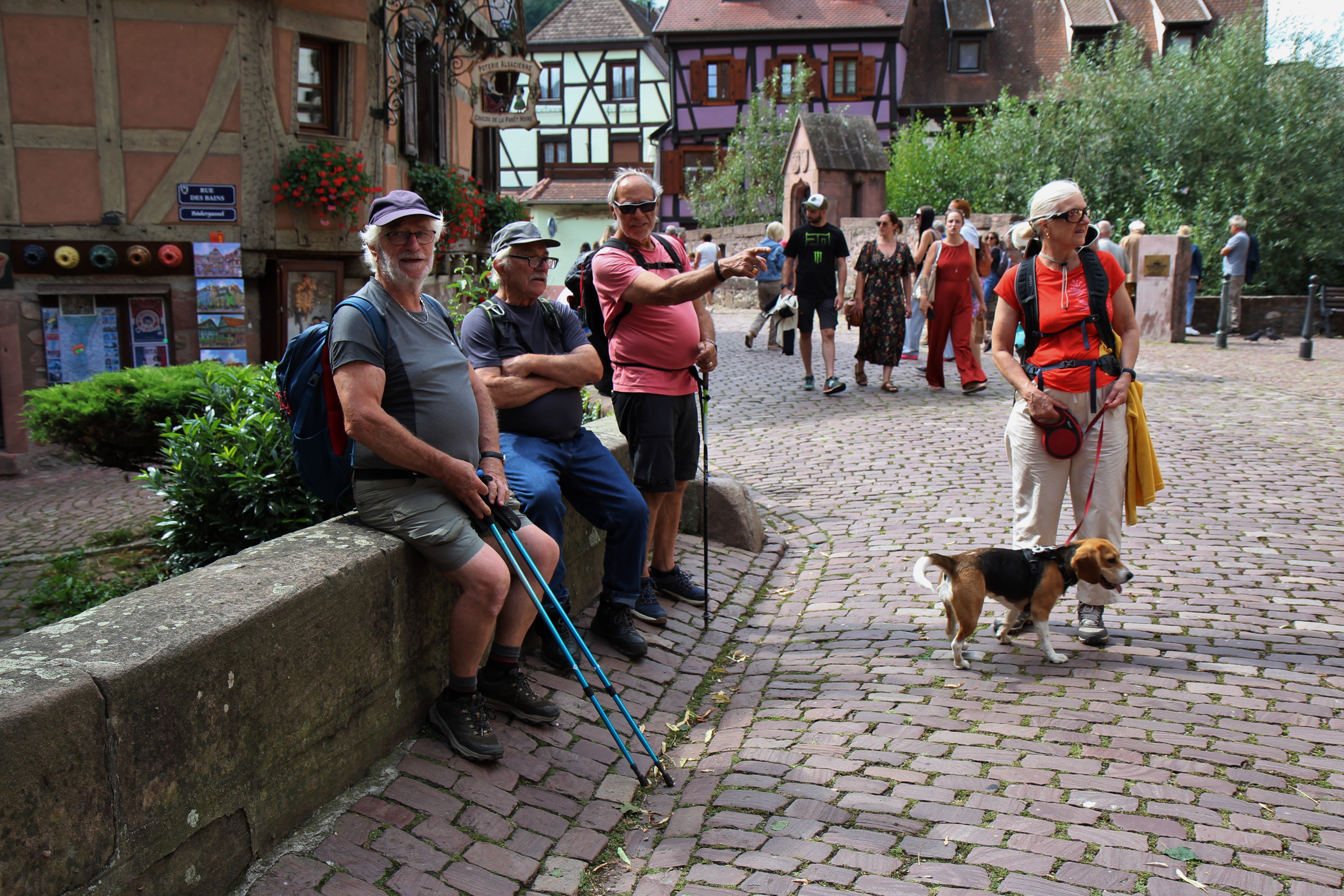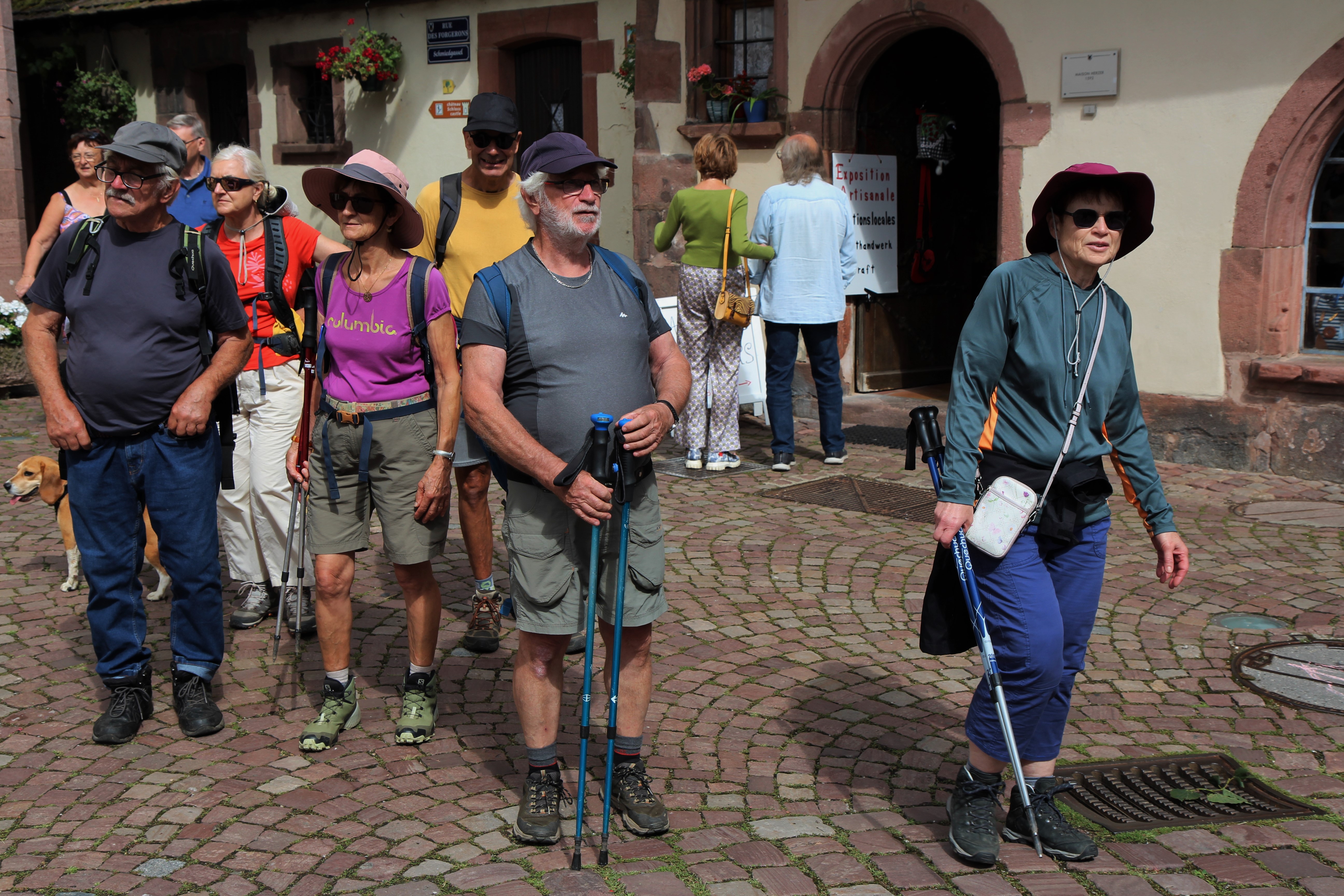 Magnifique randonnée, guidée par Jeanet, au départ de Kientzheim, direction la chapelle St Alexis sur les hauteurs de Kaysersberg. Retour par le chemin du Toggenbach puis visite de Kaysesberg et Kientzheim avant d’arriver au parking.