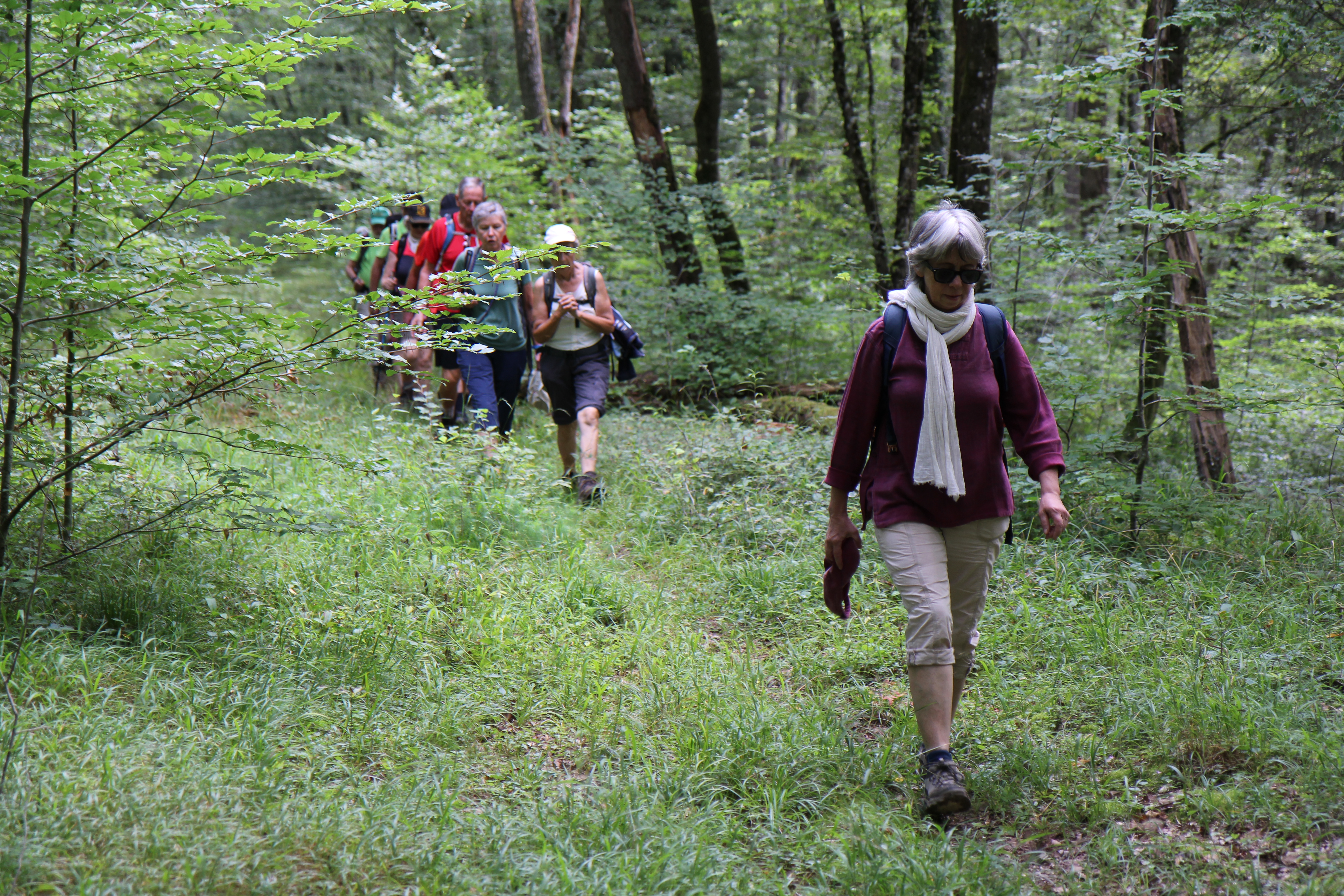 Le randonnée, guidée par Joseph du CV Wasselone et dont le parcours est relativement plat, s’est fait uniquement en forêt. Les premiers km sont des sentiers assez sauvages. La forêt est composée d’un mélange de feuillus et de conifères.