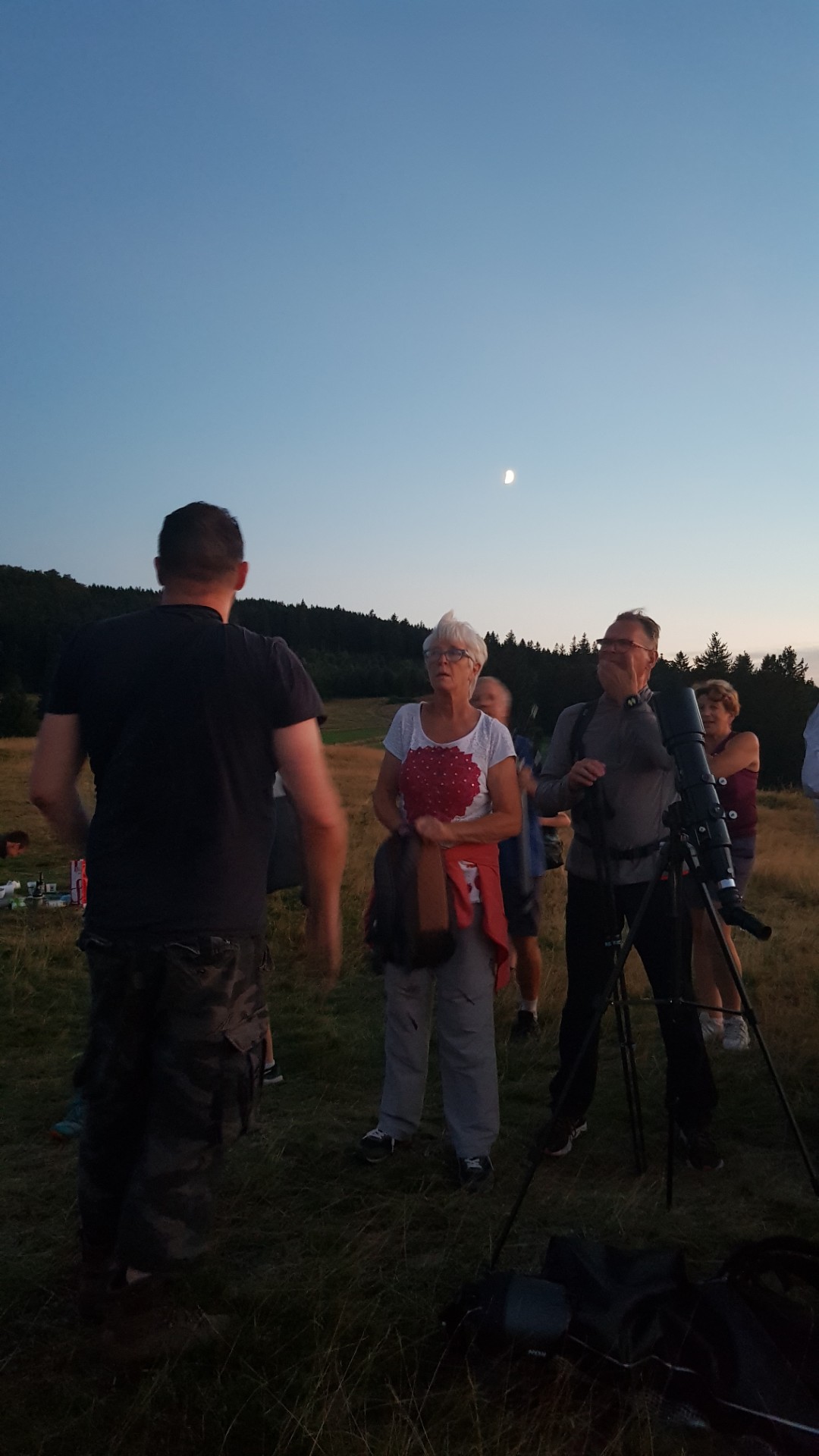 Le guide, Pierre, avait invité Lionel LANDRE, astronome amateur, et donc animateur de la soirée. Depuis le Schelmeck, il nous a raconté le fonctionnement de notre galaxie, puis nous a fait découvrir de nombreuses constellations. Le ciel était rempli d’étoiles, et quelques étoiles filantes ont surpris les participants.