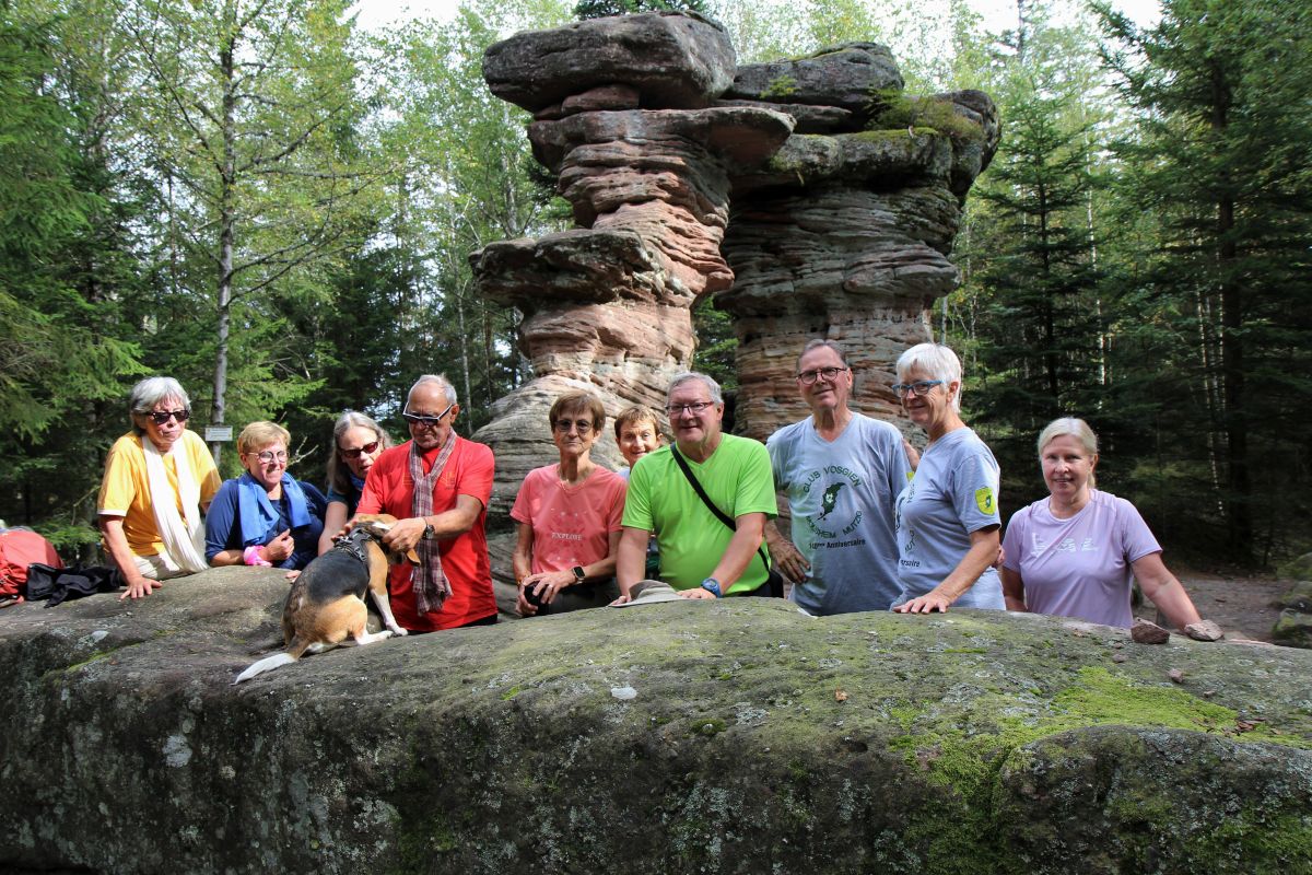 11 participants à la randonnée suivante : porte de pierre – rocher de Mutzig, col du Narion, refuge du Schliffstein et retour au parking.