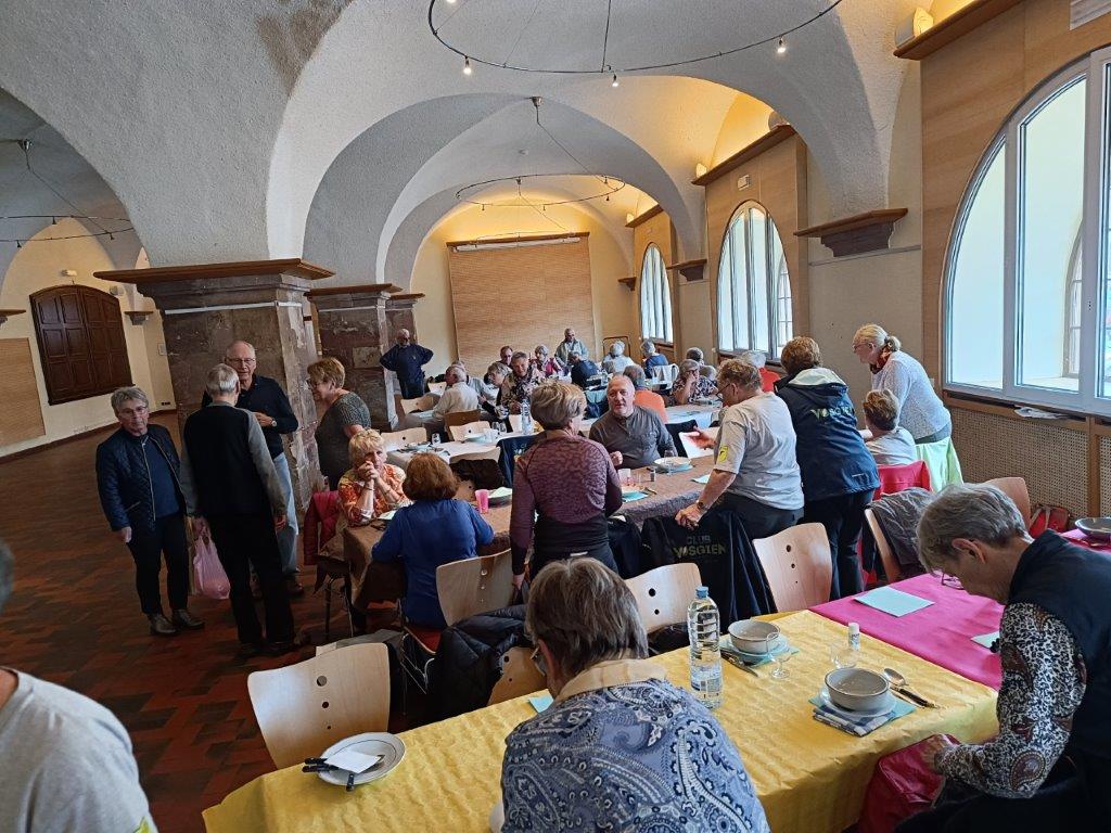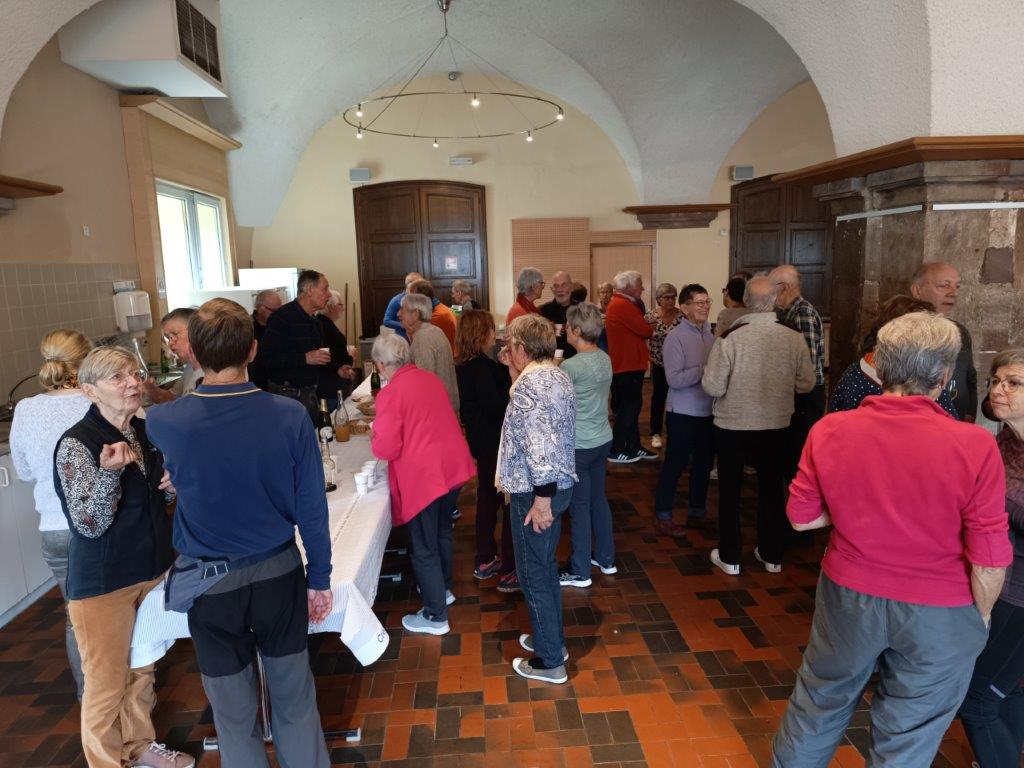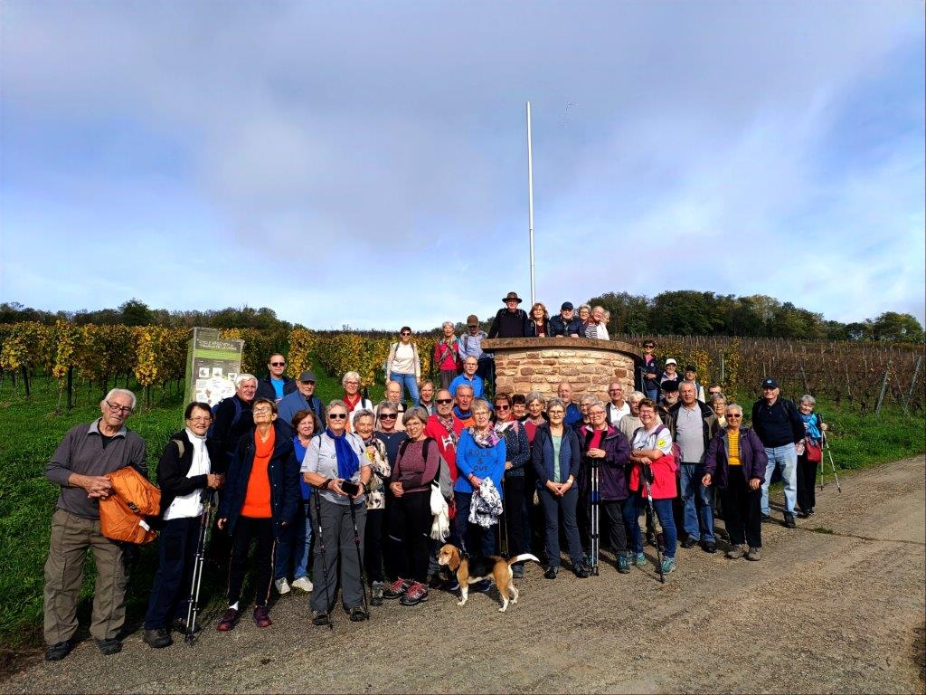 58 personnes ont participé à cette journée qui a débuté par ne petite randonnée de 8 km sur la colline de Molsheim suivie à midi de la « soupe des vendangeurs » à la Monnaie.
