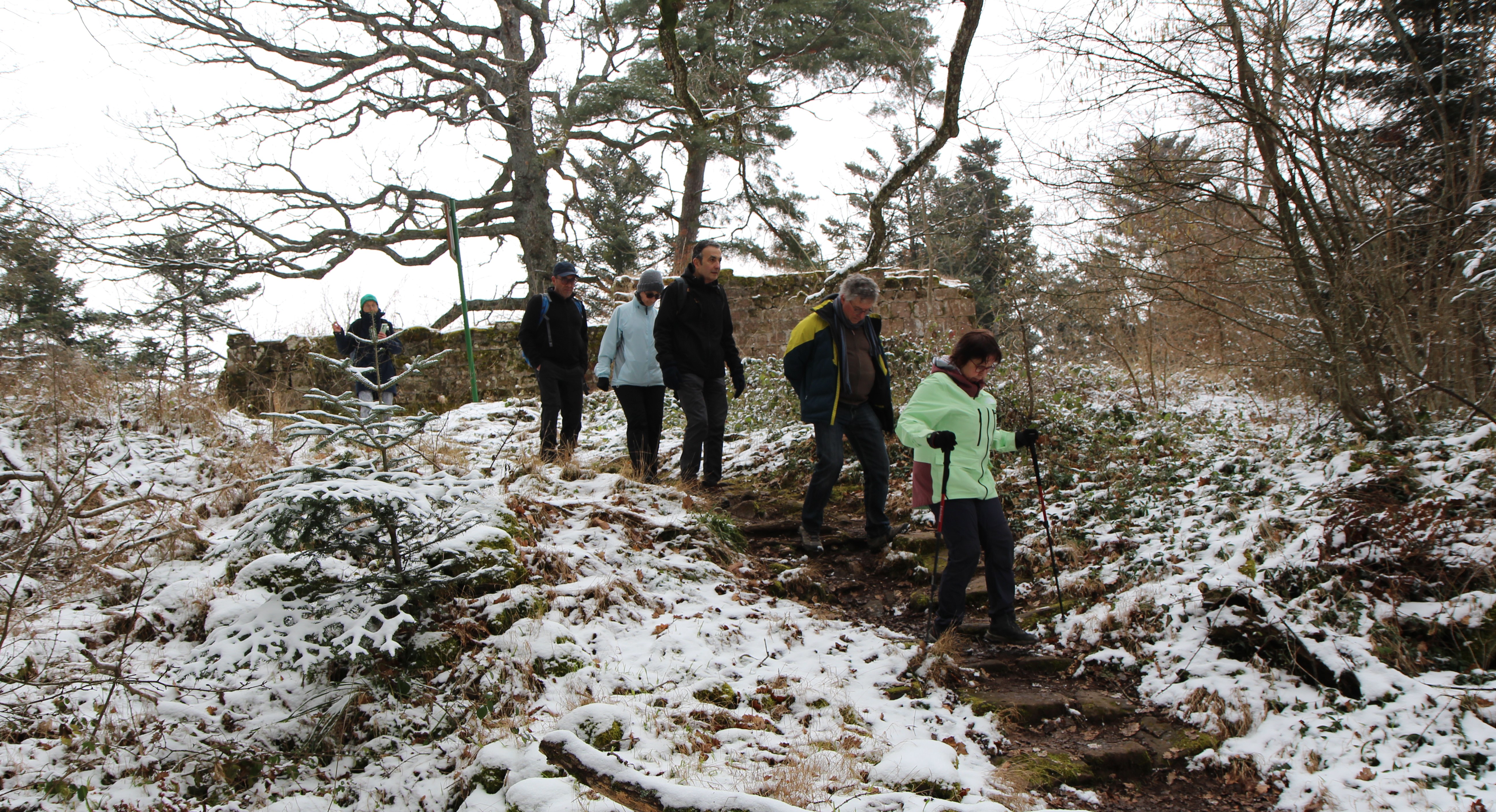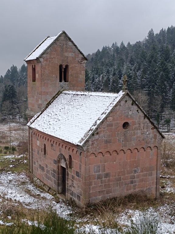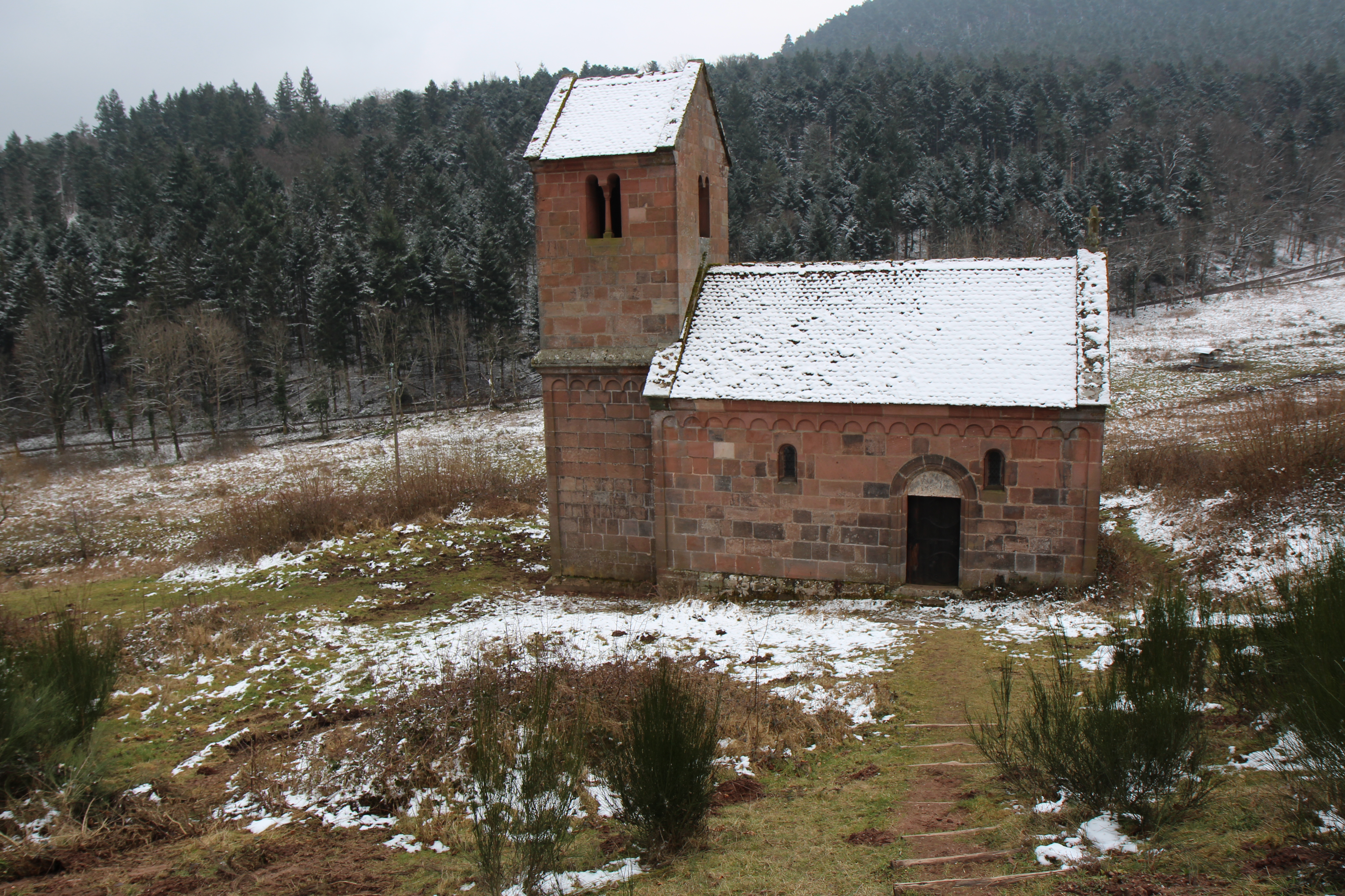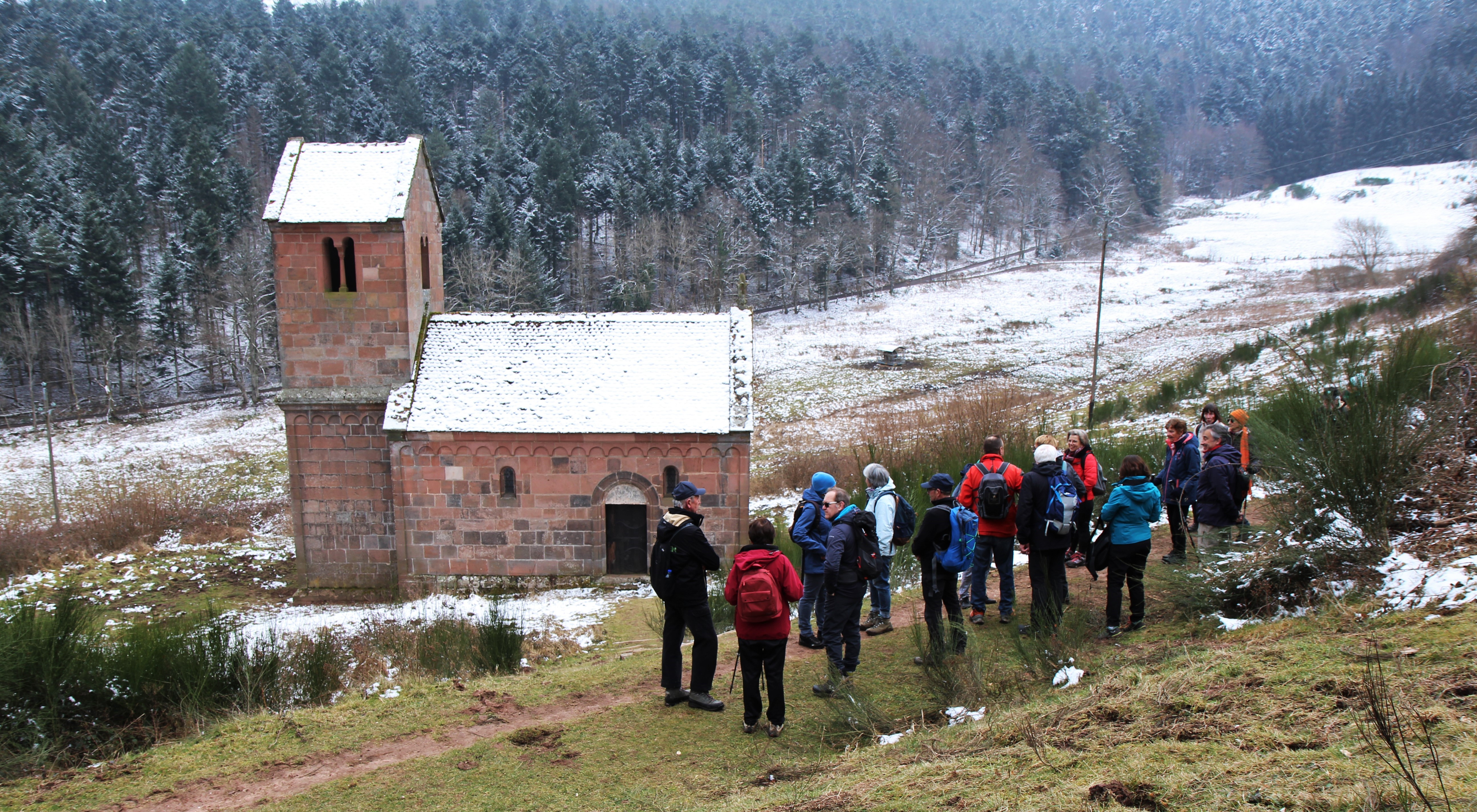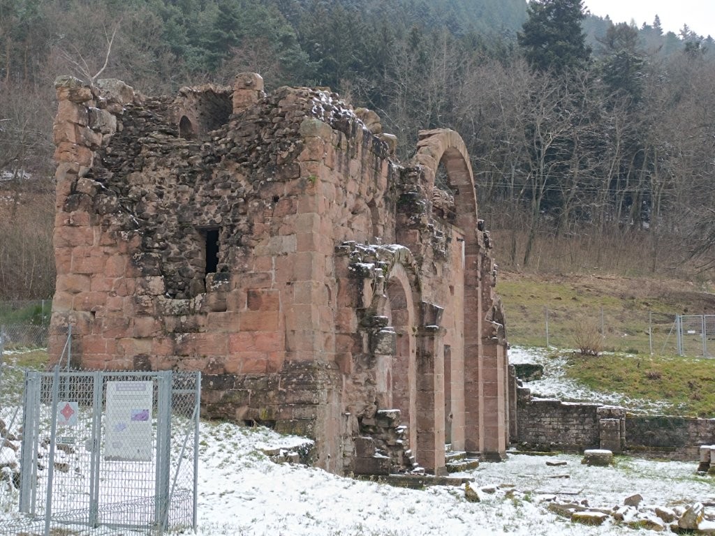 Montée vers les ruines de l’abbaye de Niedermunster et la chapelle St Nicolas du XIIe siècle.