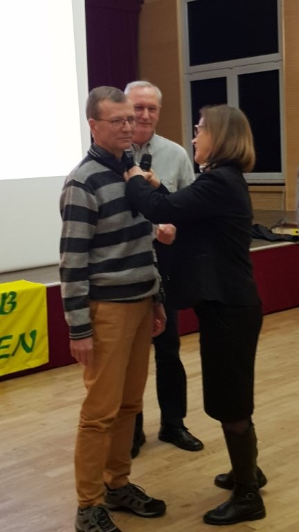 Michel, vice-président du club, a été mis à l’honneur pour ses 40 années de présence particulièrement actives au club vosgien. Pour cet investissement exceptionnel, il lui a été remis le houx d’or ainsi qu’un cadeau.