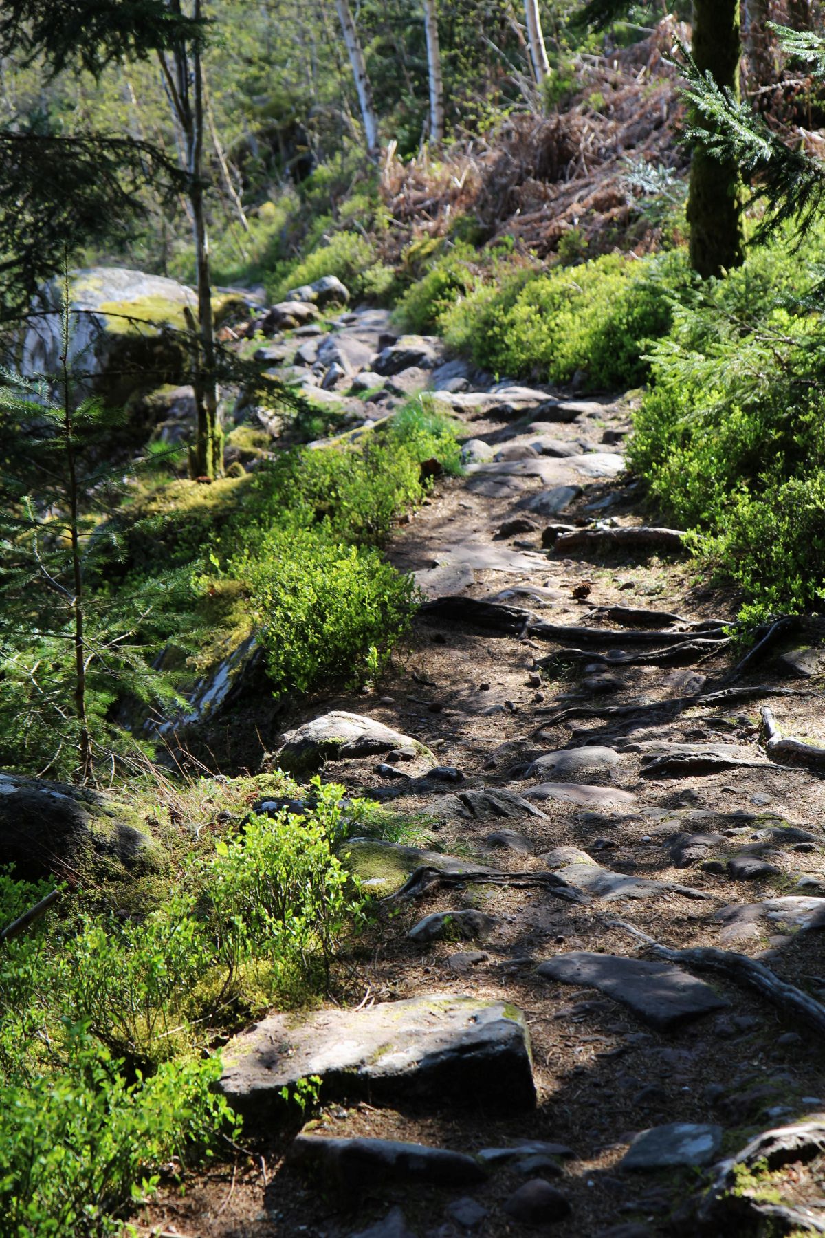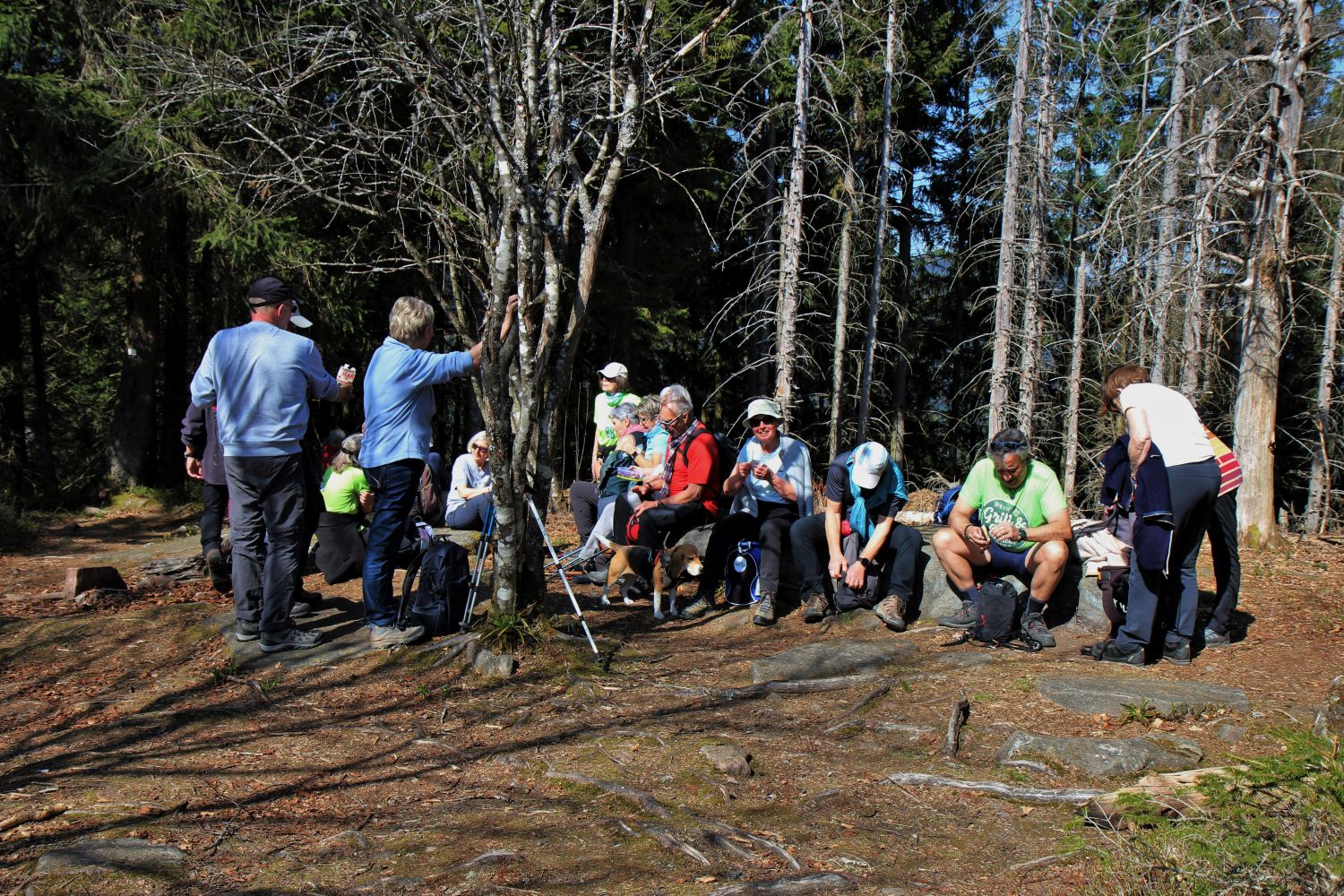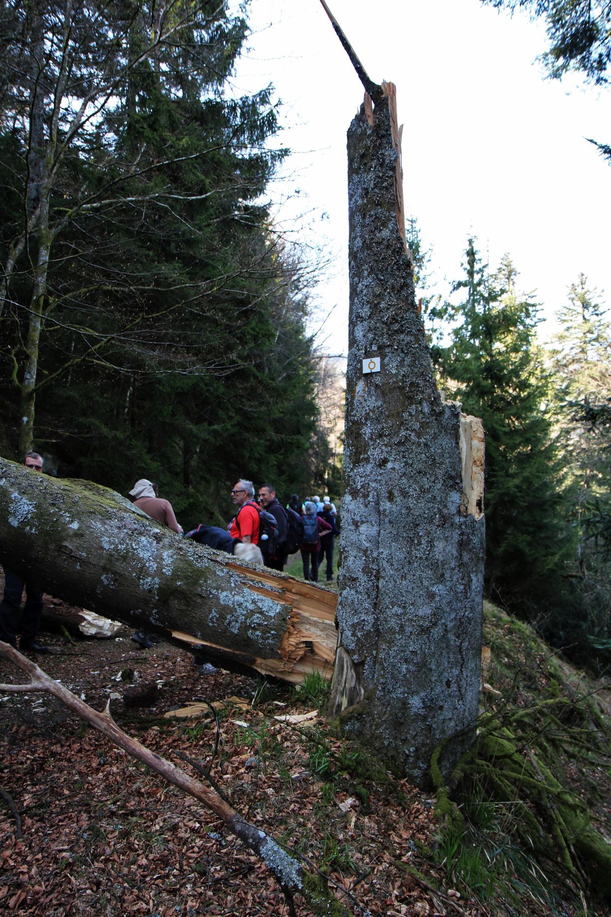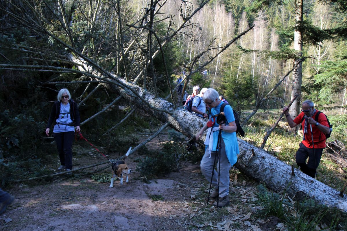 Après une bonne grimpette, le groupe arrive au sommet du jardin des fées. Une petite pause permet à tout le monde de profiter de la vue et du temps agréable. Sur le chemin du retour, il fallait contourner quelques arbres tombés.