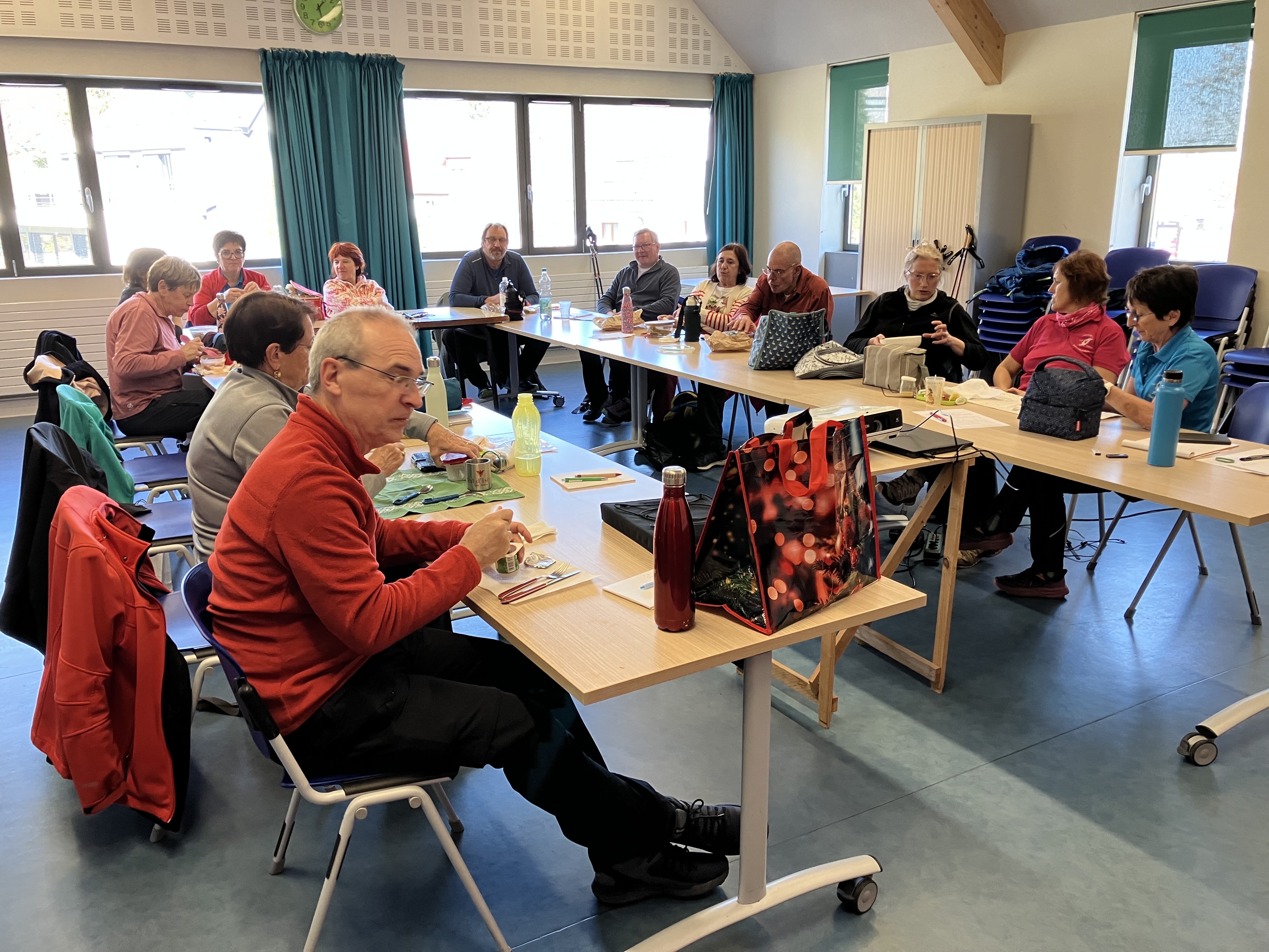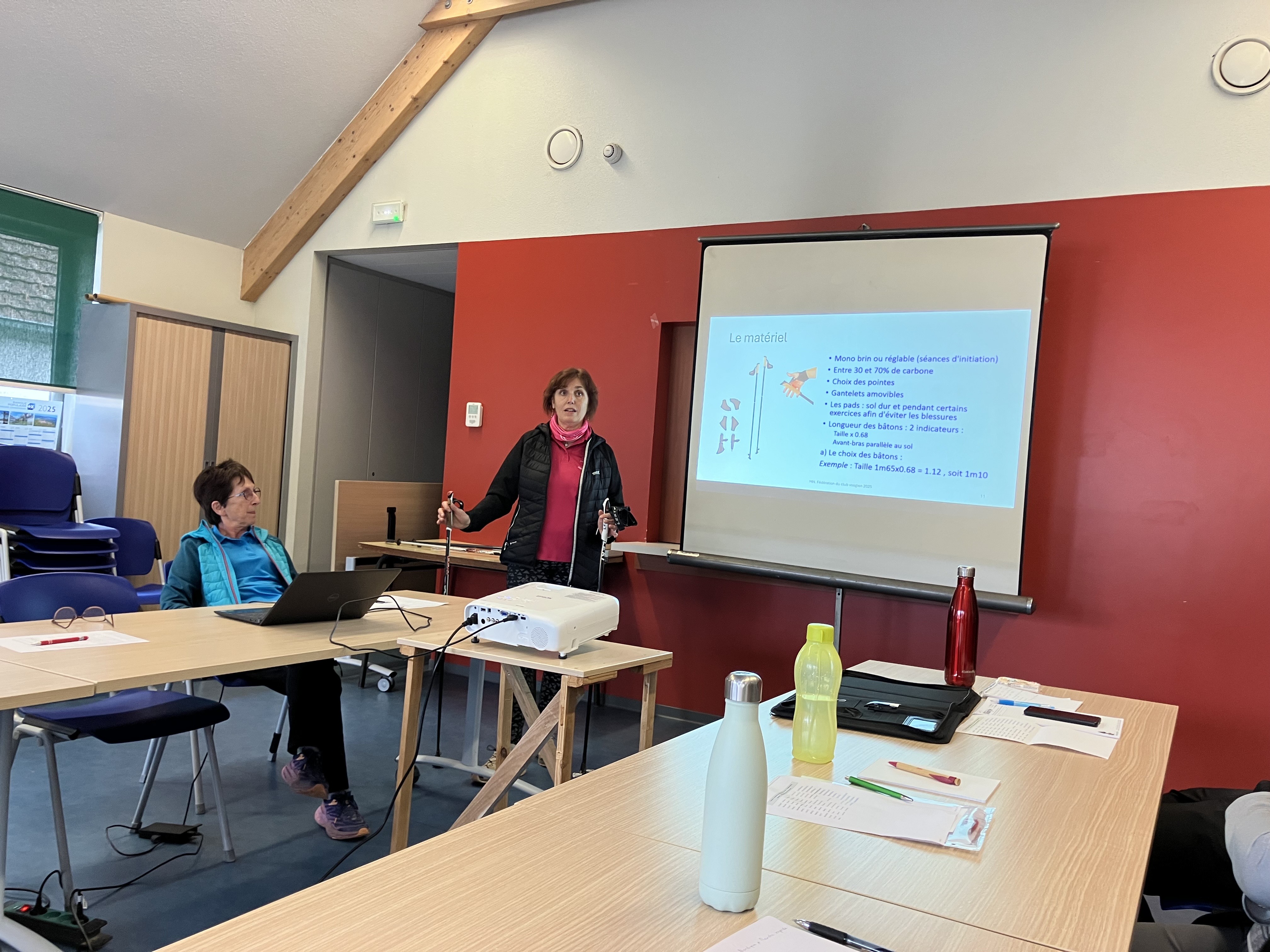 Christian, Bernard, Paulette et Fabienne ont fait partie du groupe de 15 personnes formées à la pratique de la marche nordique par Marie-Christine et Doris. Journée très enrichissante.
