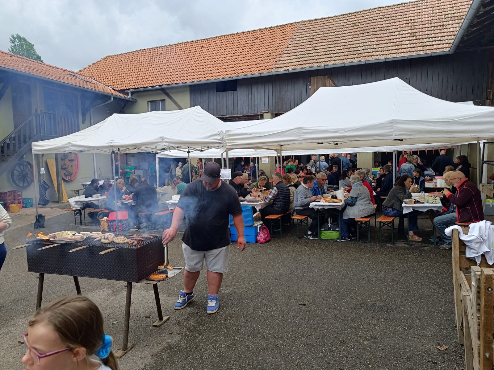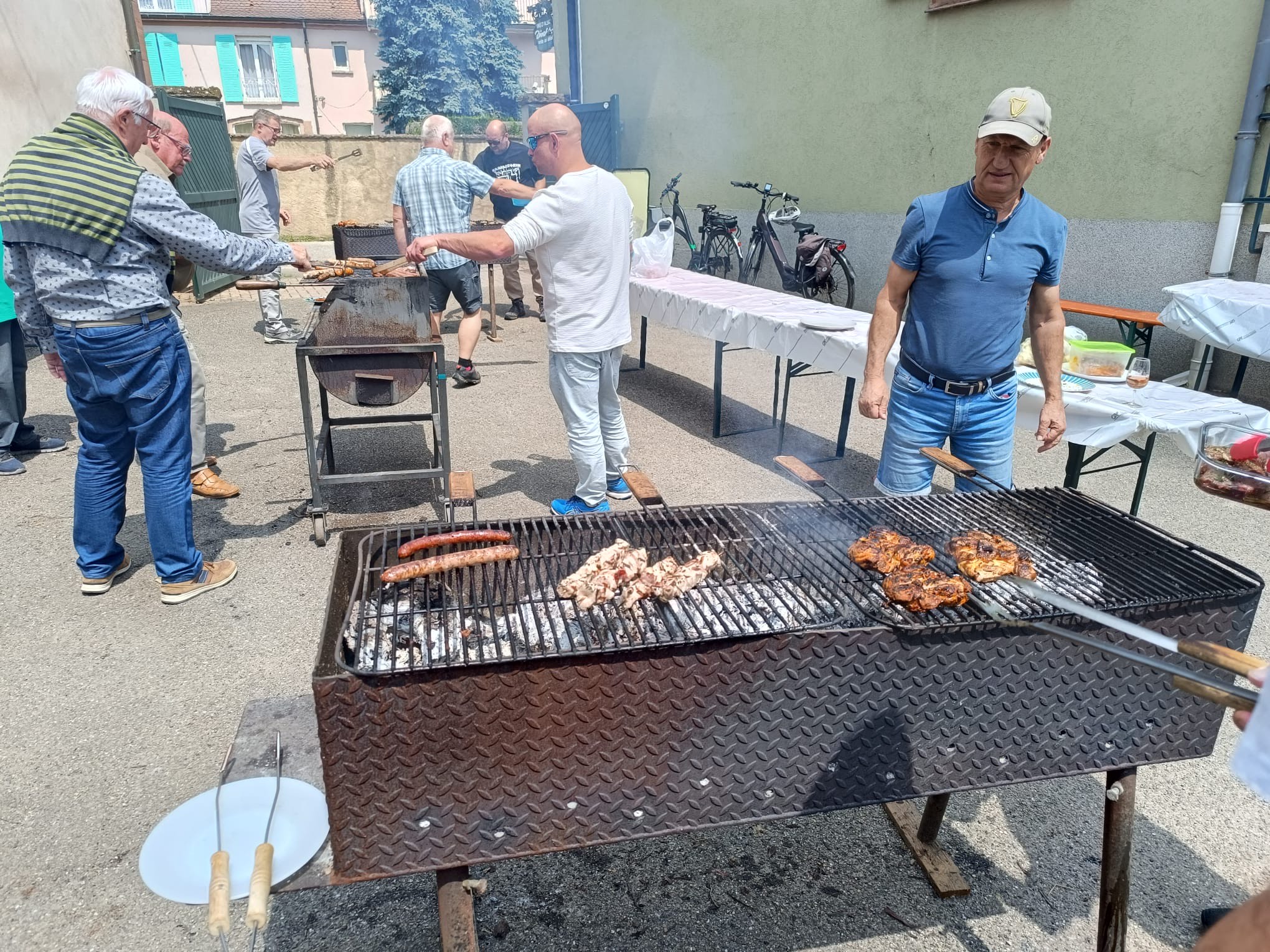 A midi, pique-nique dans la cour du domaine où chacun a pu faire ses grillades sur des barbecues mis à la disposition.