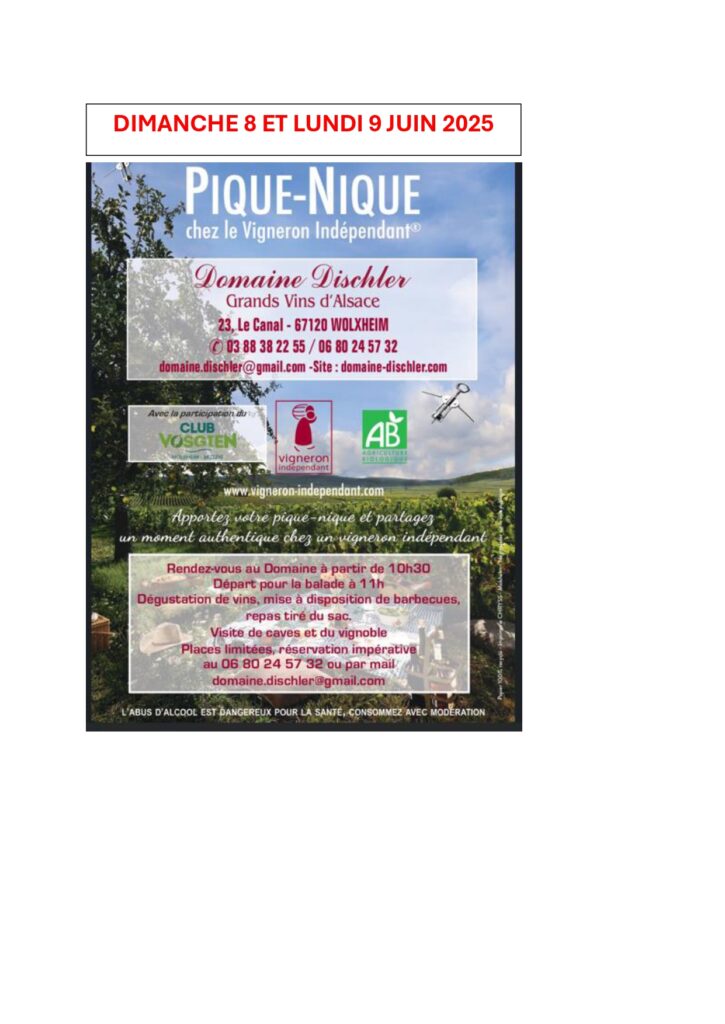 Une quarantaine de membres a participé aux journées « portes ouvertes » les 8 et 9 juin au Domaine DISCHLER à WOLXHEIM.