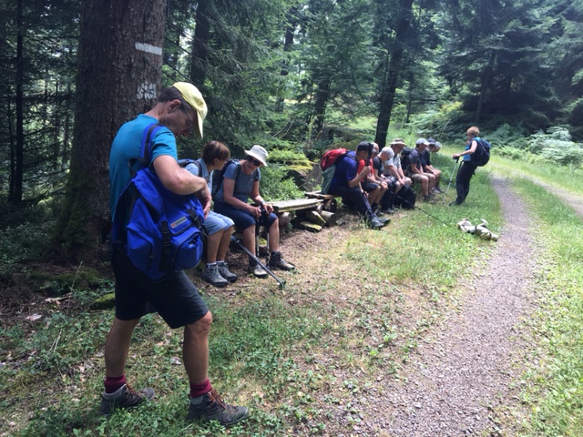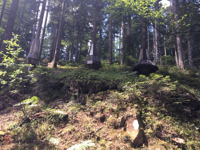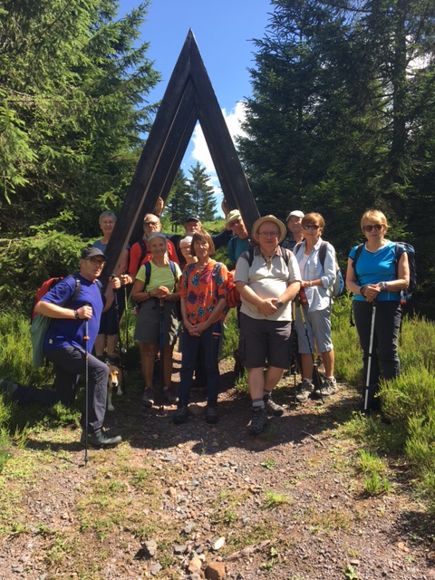 Départ de BARFONTAINE. Randonnée entre Vosges et Alsce sur les hauteurs de Saulcy. Le long du chemin, découverte de quelques oeuvres d’art surprenantes.