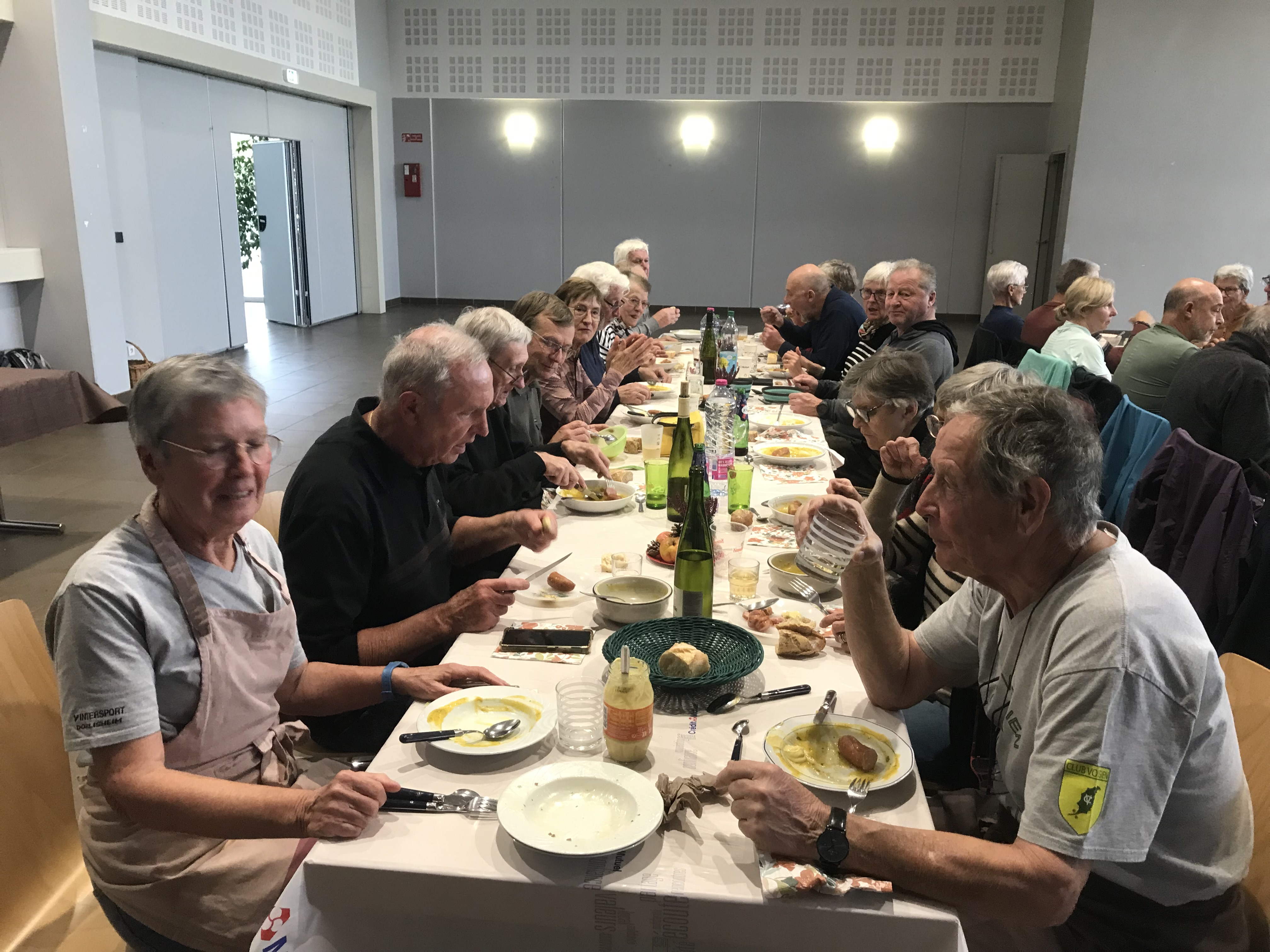 A midi, tous se sont retrouvés pour le repas : apéritif – soupe – saucisses – dessert – café – boissons.