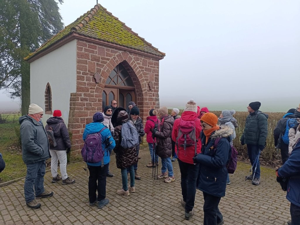 Belle randonnée malgré un brouillard persistant. Le circuit : Scharrachbergheim – Irmstett – chapelle Dirre Herrgott – Scharrch – Odratzheim et retour.