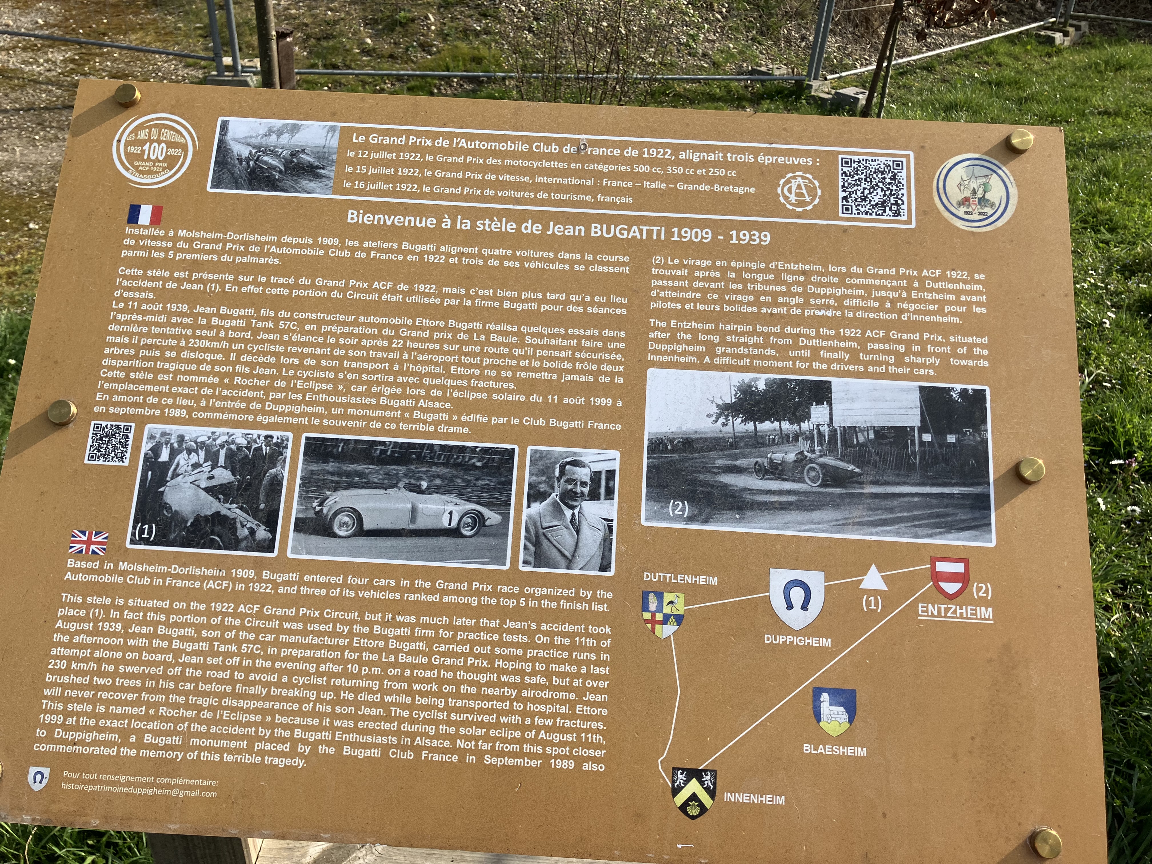 Circuit : Duppigheim – Stèles Jean Bugatti – Entzheim village – le long de l’aéroport – Vieux Moulin – Duppigheim.